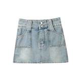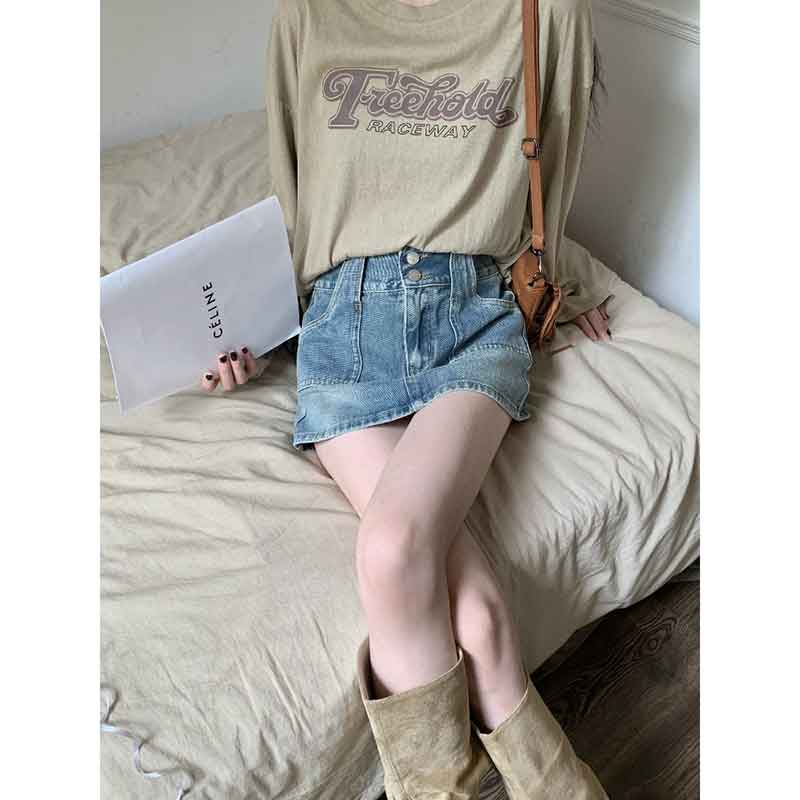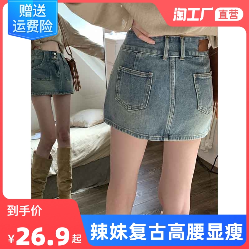 Ретро джинсовая юбка, летние штаны, мини-юбка, А-силуэт, высокая талия, с акцентом на бедрах