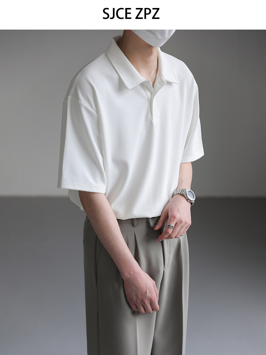 Футболка с коротким рукавом, футболка polo, изысканный стиль, оверсайз, высокий воротник, короткий рукав