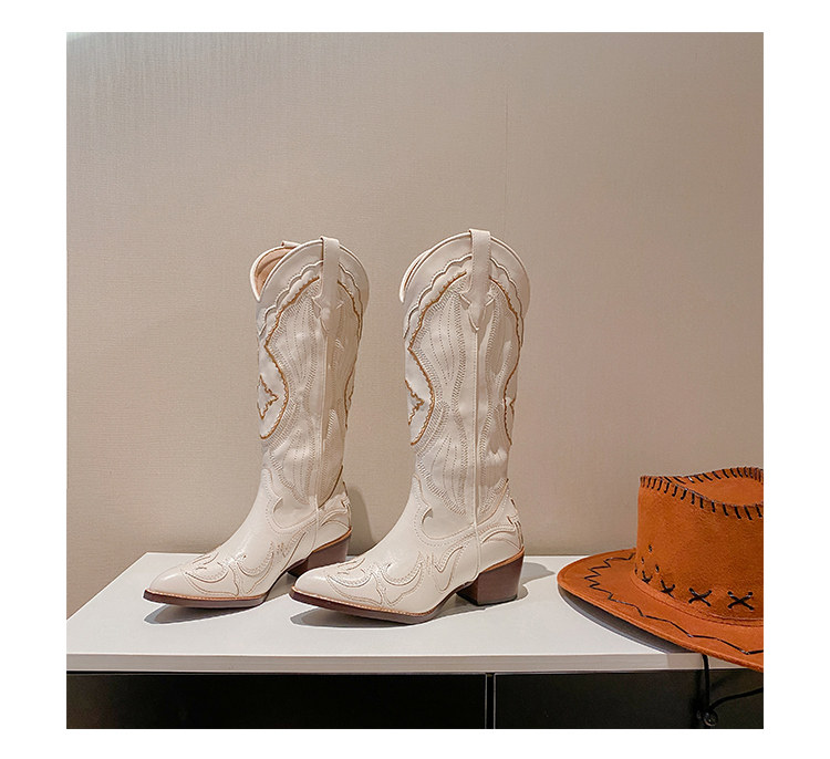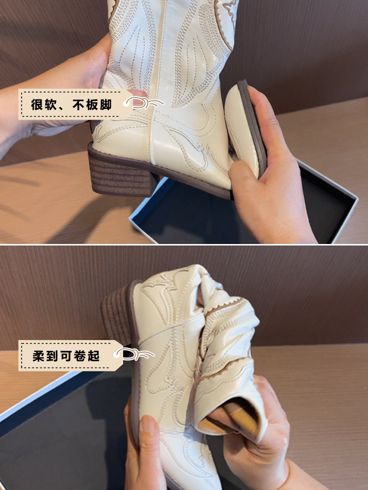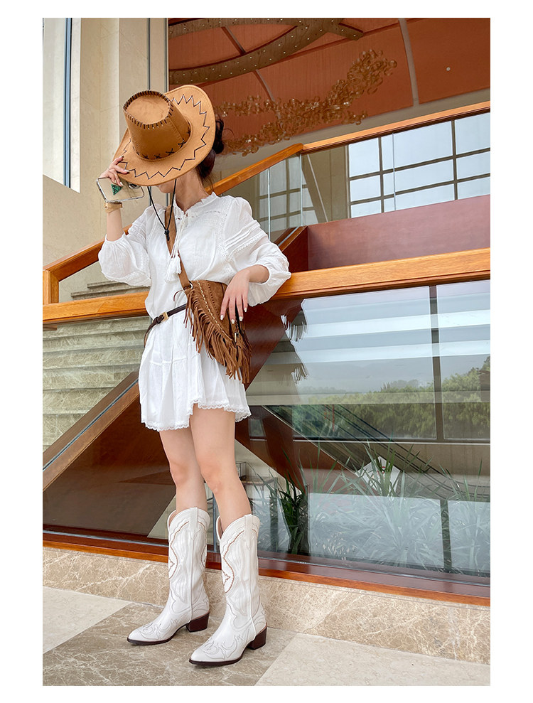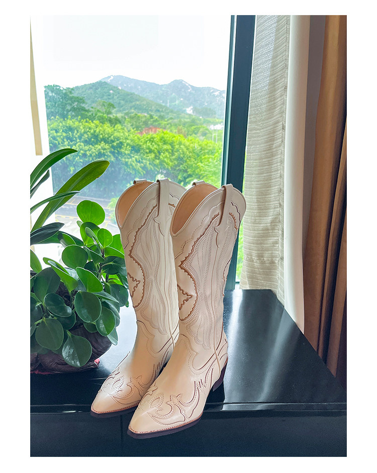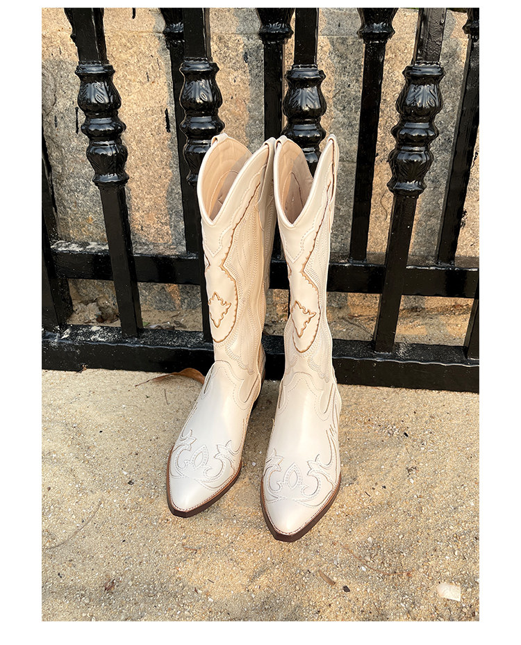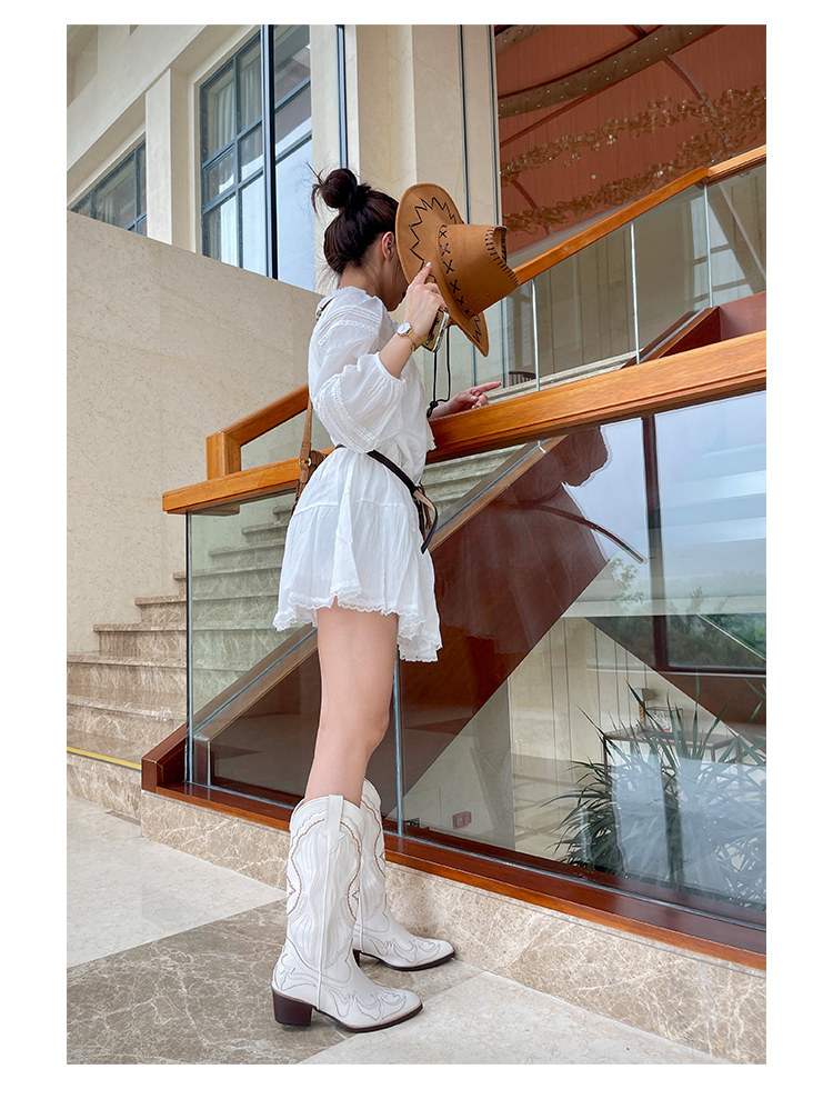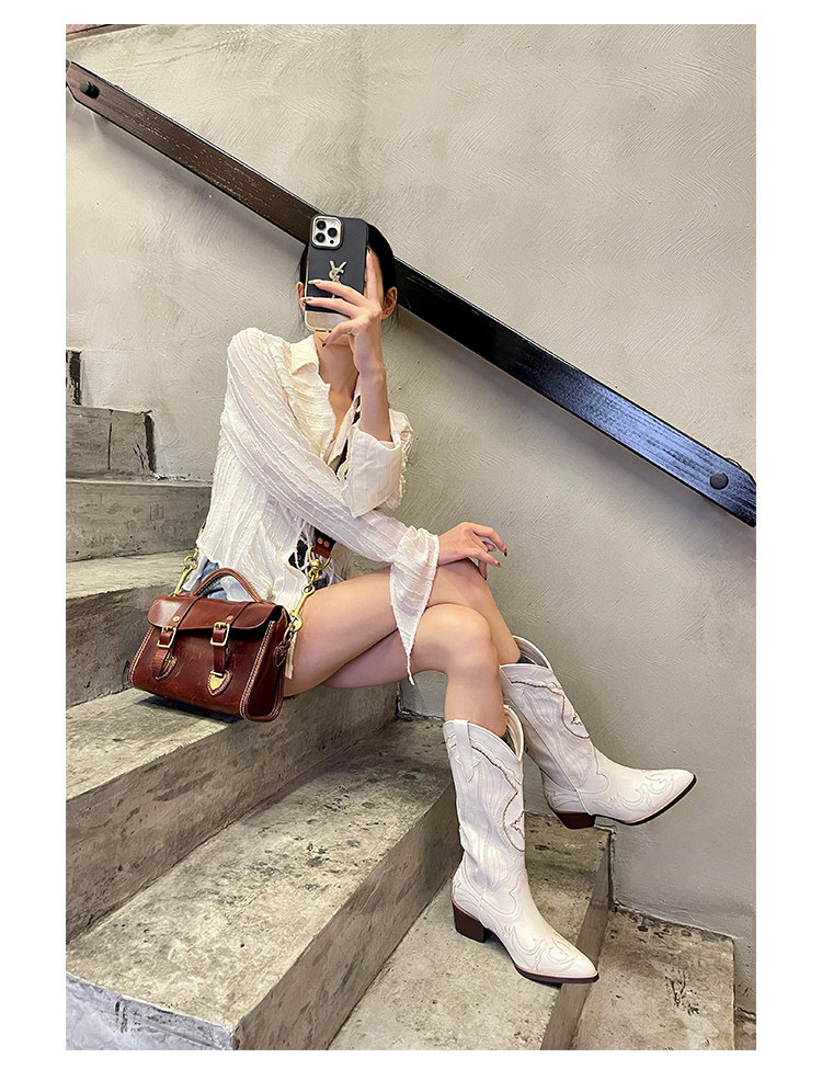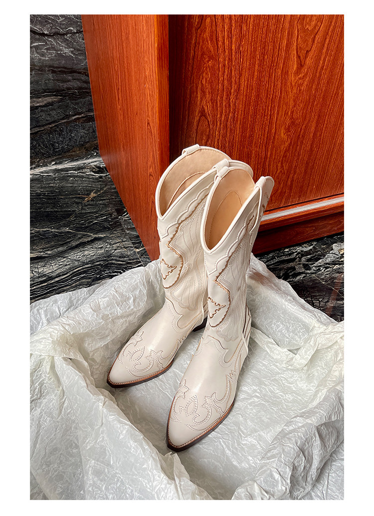 Джинсовые высокие белые высокие сапоги, ботинки, с вышивкой, по фигуре, из натуральной кожи