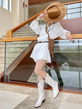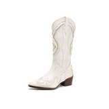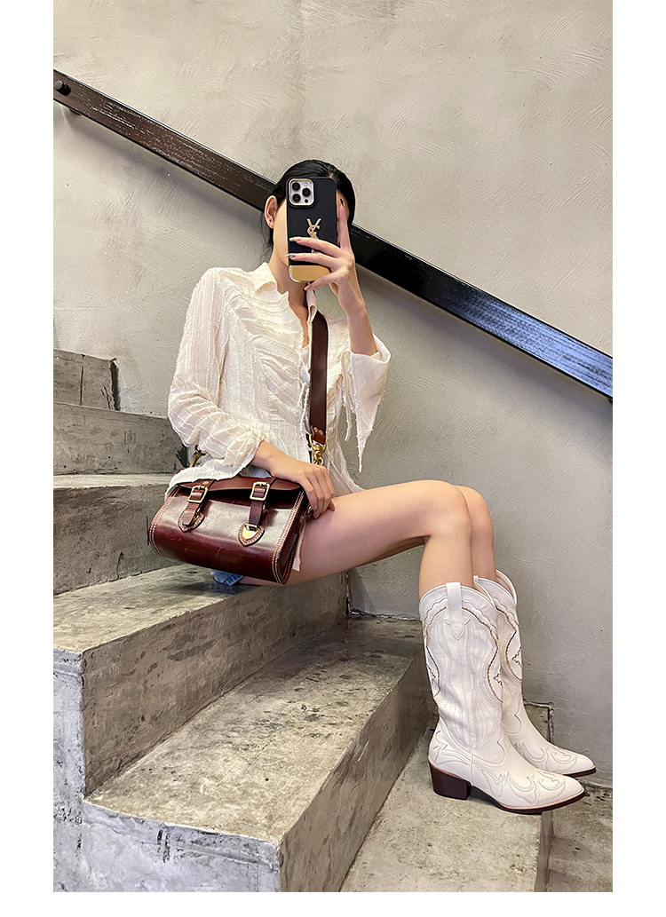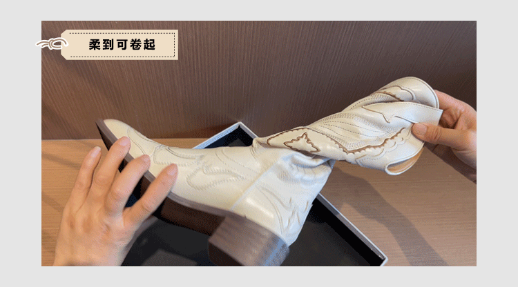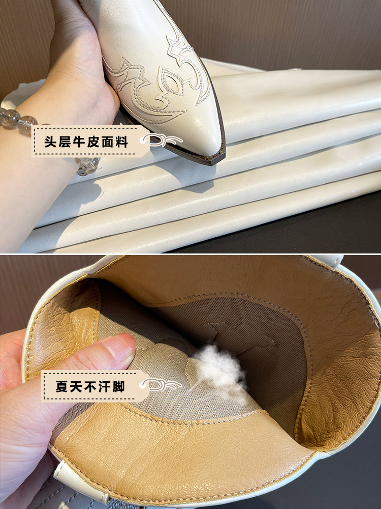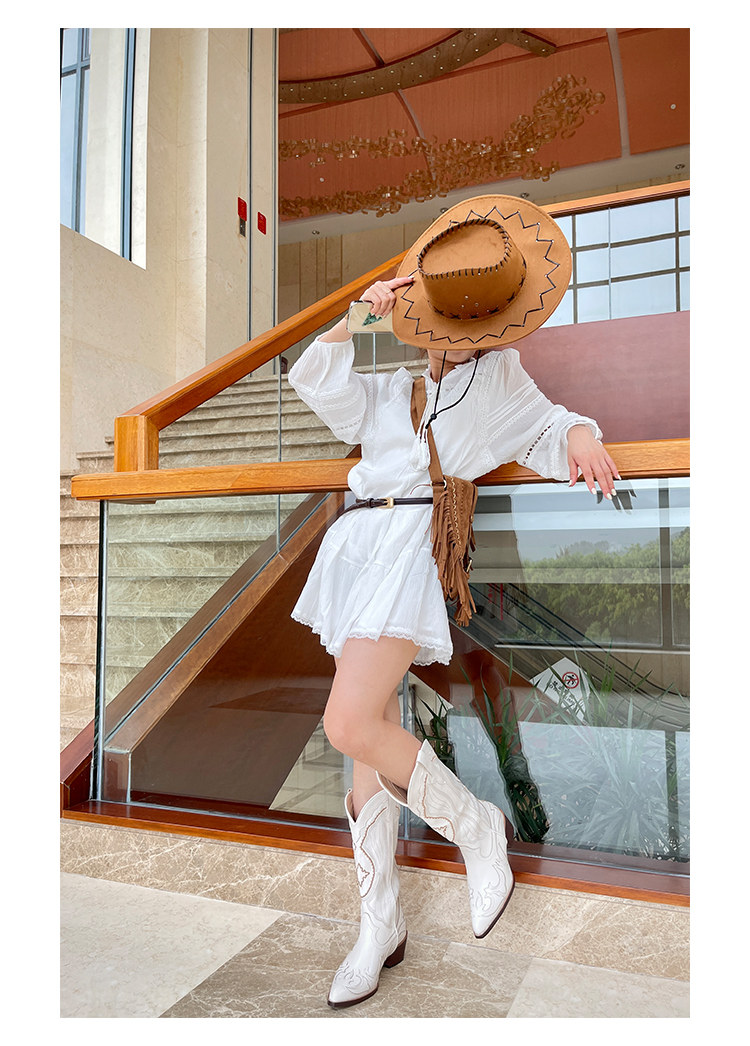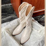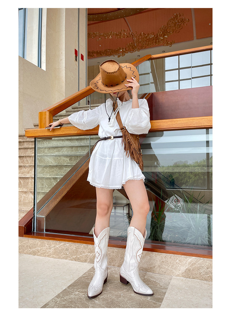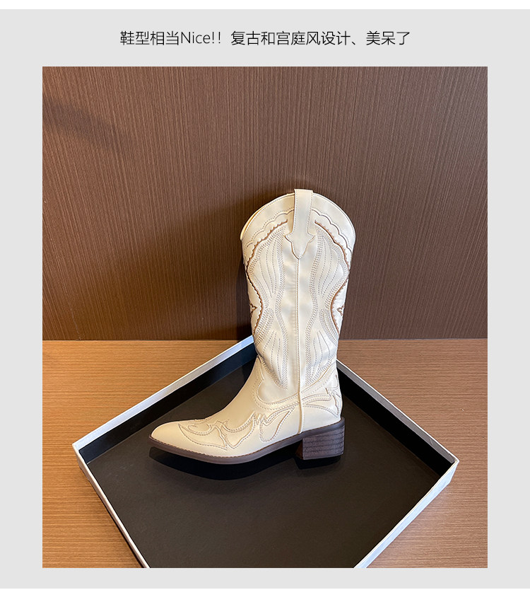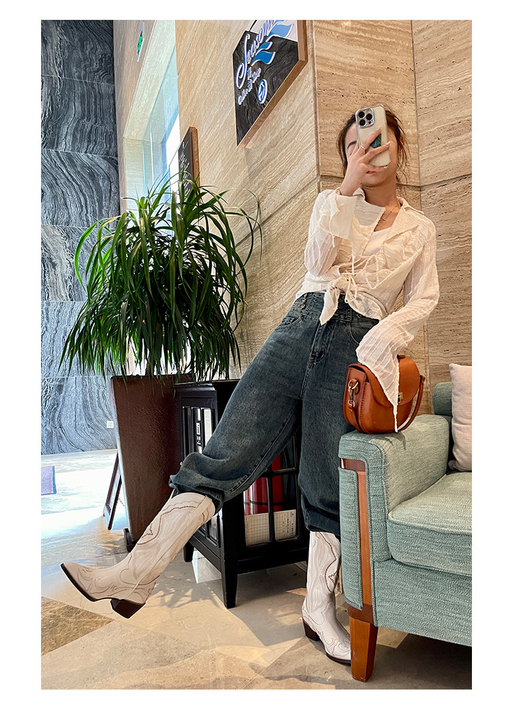 Джинсовые высокие белые высокие сапоги, ботинки, с вышивкой, по фигуре, из натуральной кожи