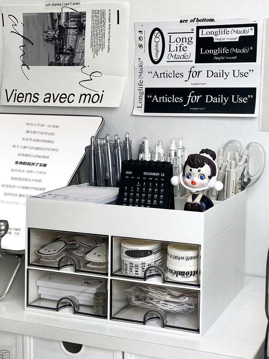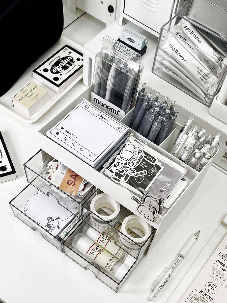 Общежитие INS настольное хранение ящика yayli для хранения стойки Студента Студент Студент Канцелярия Прозрачная коробка прозрачная коробка