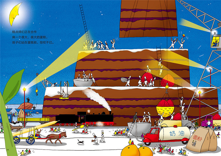 Мистер Нико и робот Дада сделали большую свечу из собранных в лесу сот.Они положили его в карету и куда-то отправились.Под топот конских копыт Дада запел, и карета неторопливо двинулась вперед.По пути нам также встретились люди, занятые перевозкой различных ингредиентов.Оказалось, что все несли с собой ингредиенты для приготовления большого торта.Через некоторое время торт был готов, и господин Нико поставил свечу на верхушку торта.Когда свечи зажглись, я понял, что это ко дню рождения Луны.