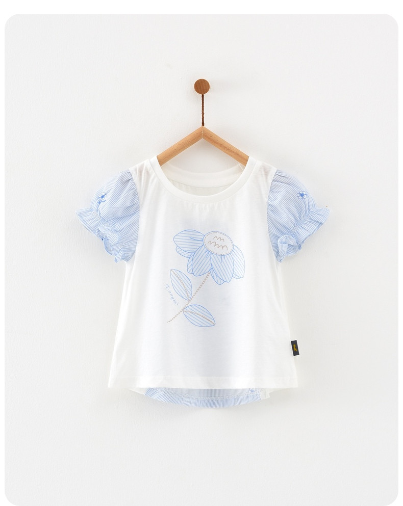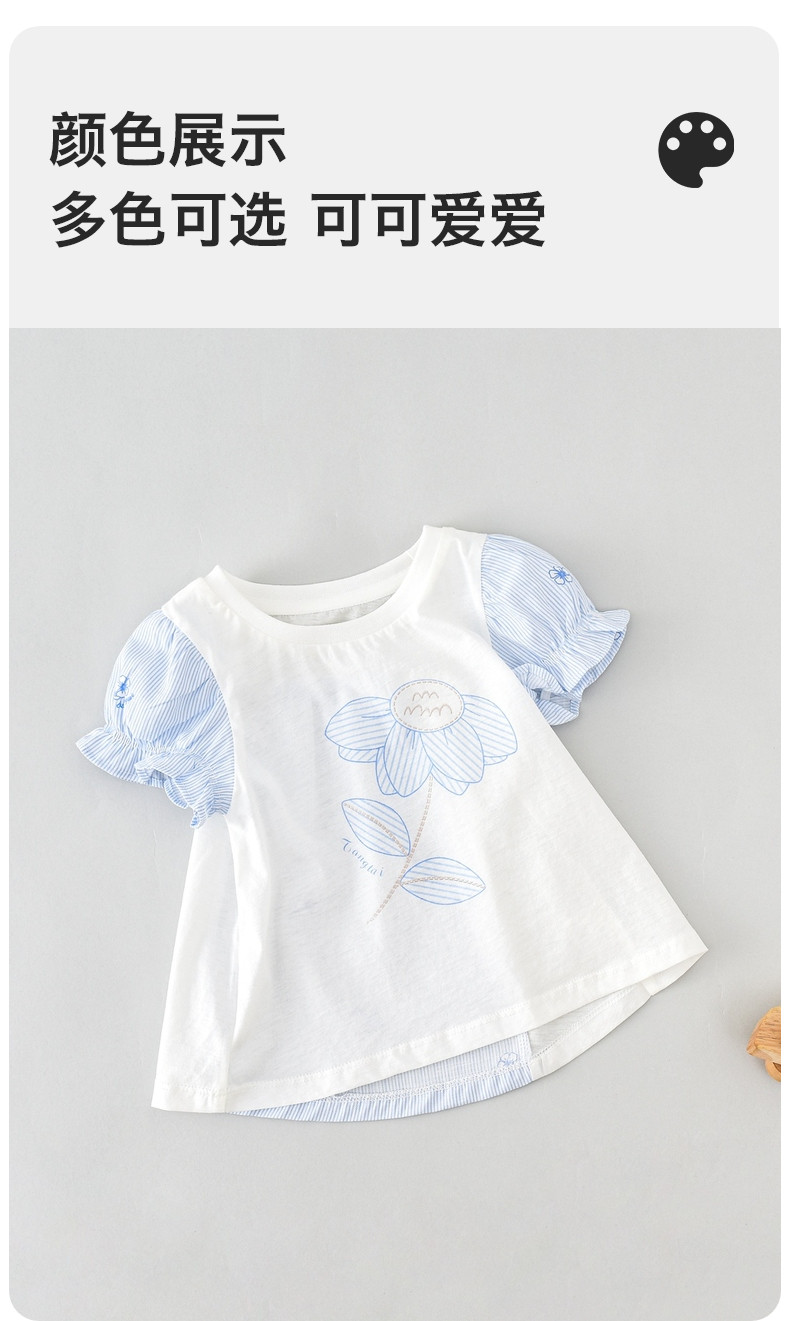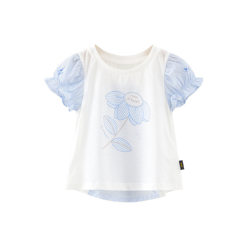 Хлопковая футболка с коротким рукавом для девочек, летняя одежда для выхода на улицу, наряд маленькой принцессы, рукава фонарики
