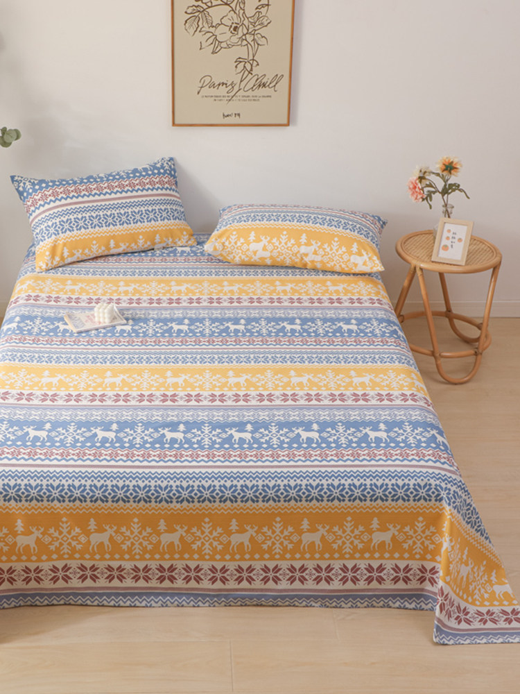 Хлопковая простыня, хлопковое покрывало, наволочка, комплект, увеличенная толщина, из хлопка и льна, 3 предмета