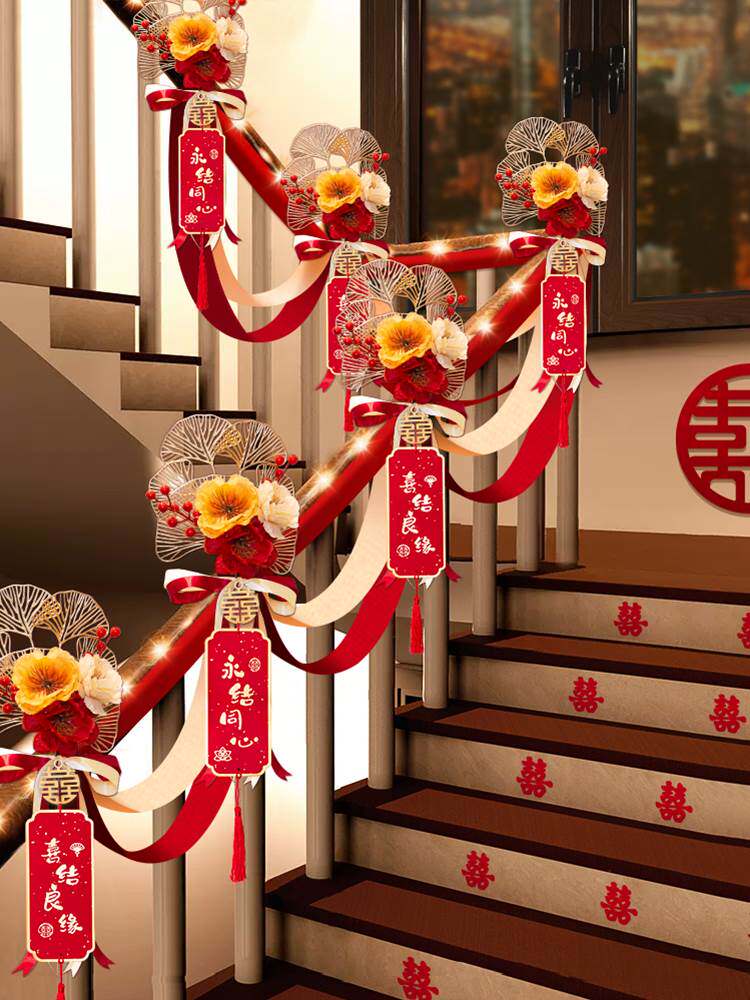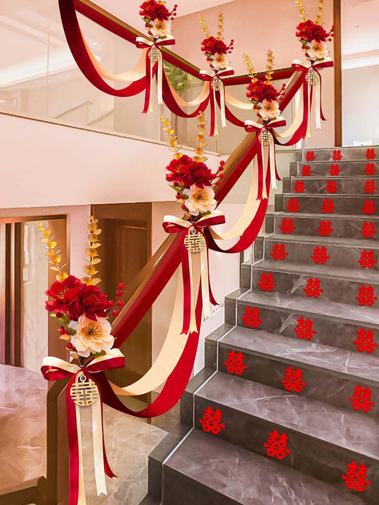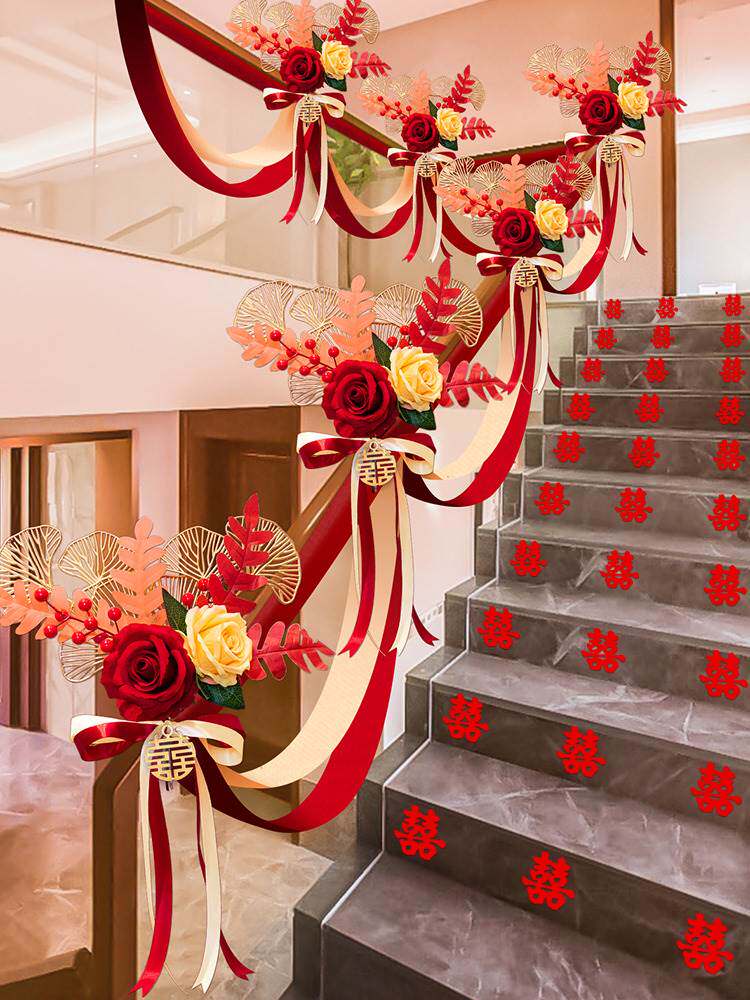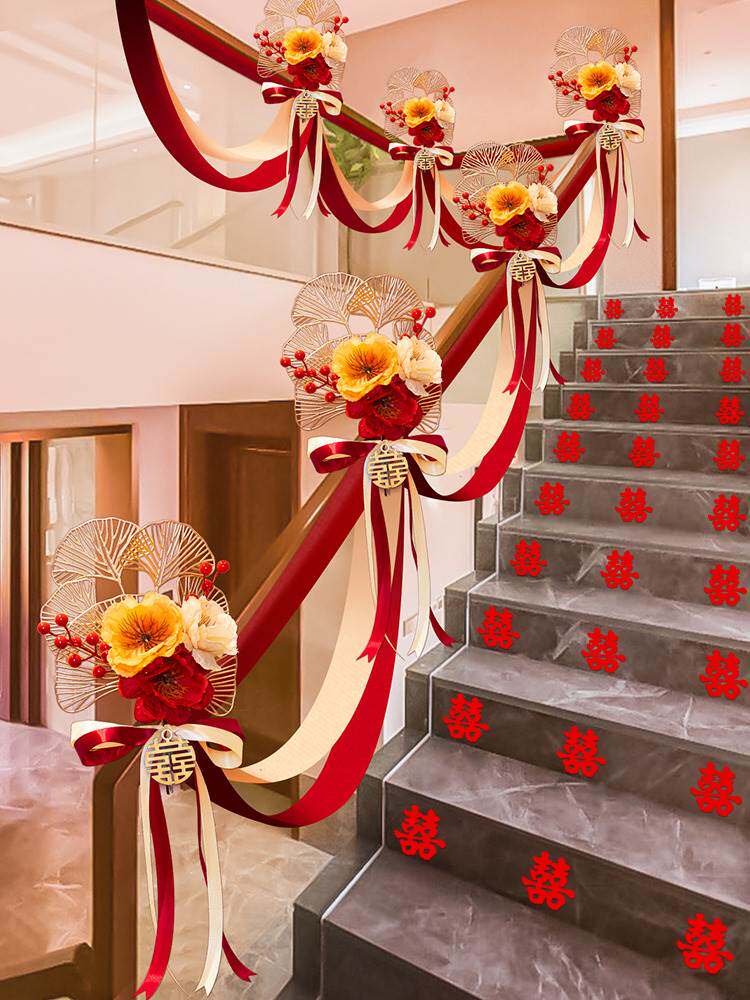 Украшение перил свадебной лестницы, элитное свадебное украшение свадебного зала, коллекция свадебных принадлежностей, набор блюд из гирлянд из лент