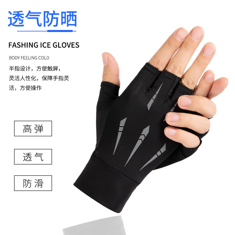 Мужские летние тонкие нескользящие перчатки, дорожный шелковый комплект, защита от солнца, без пальцев