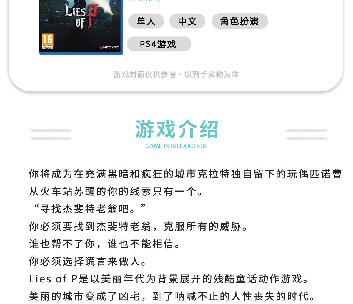 Заказать Sony PS4 Новая игра, ложь Pinoco Lies of P Chinese версии бесплатной доставки августа