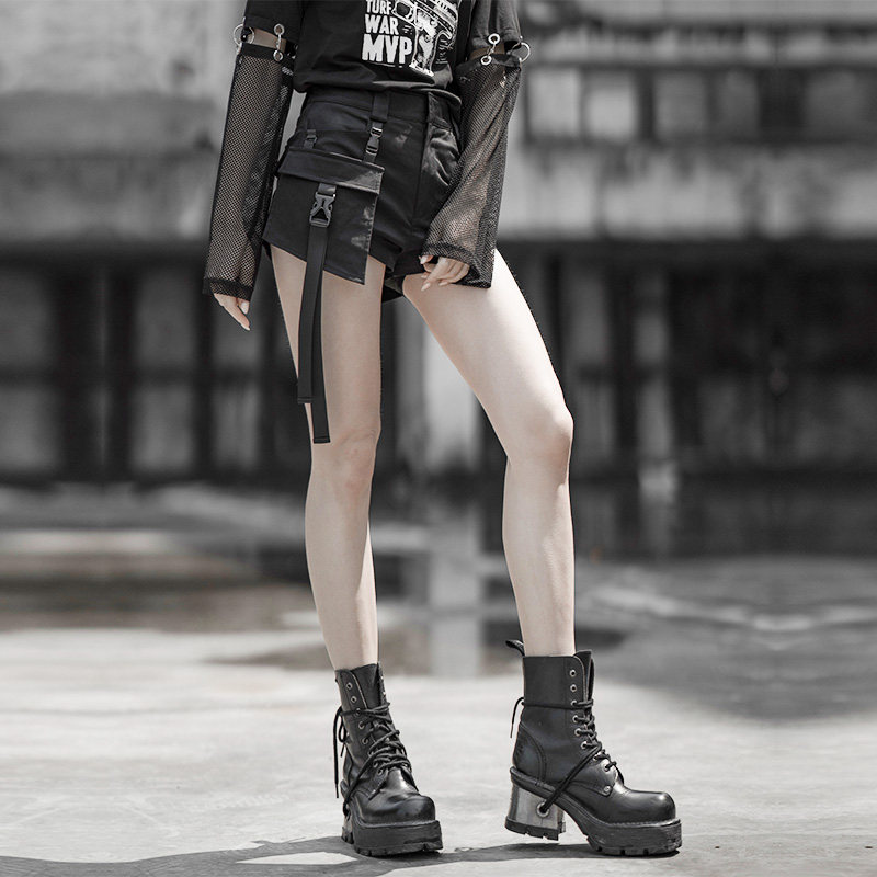 Летние шорты, приталенные штаны, в стиле панк, высокая талия