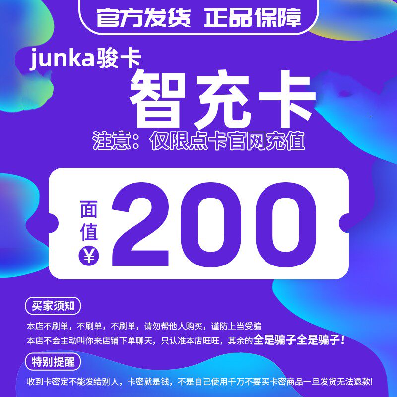 Jun Ka Zhi Chong Card 200 Yuan Card Mi-Mi Jun.com Smart Charging Card Автоматическая карта