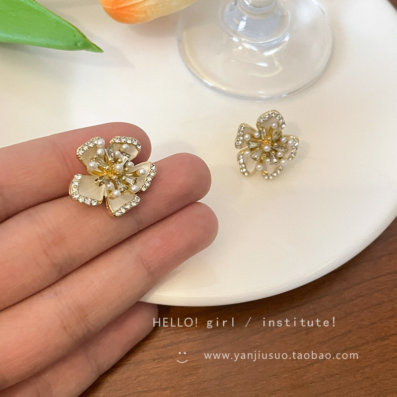 Небольшие дизайнерские ретро серьги из жемчуга, тренд сезона, в цветочек, легкий роскошный стиль, изысканный стиль, французский ретро стиль
