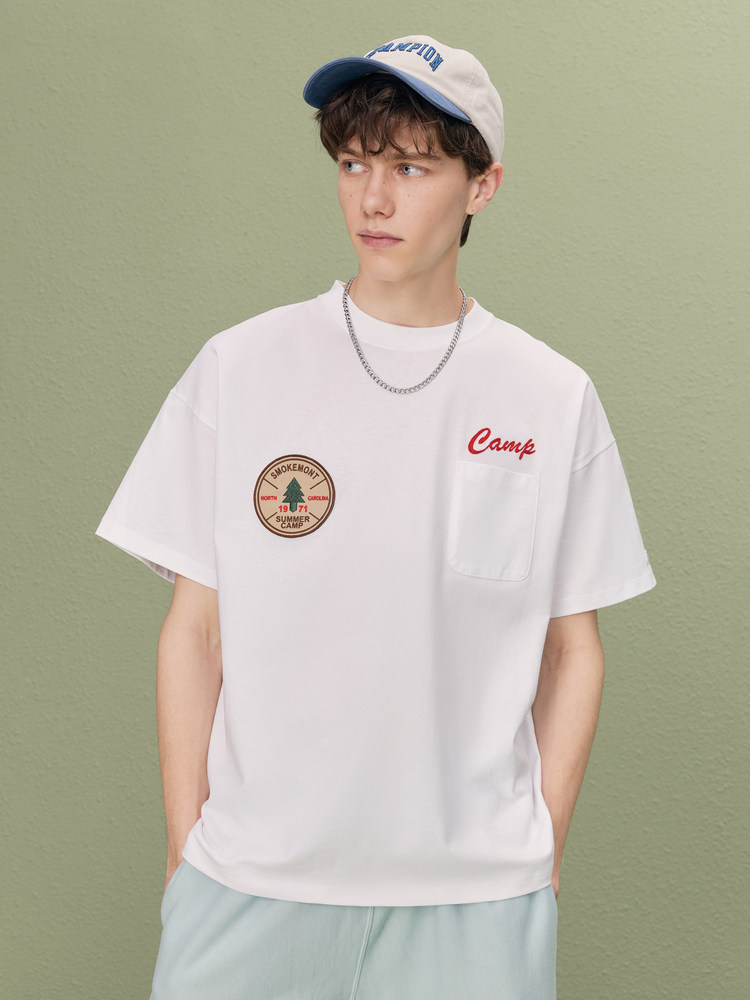 Летний значок, хлопковая ретро футболка, с вышивкой, короткий рукав, в американском стиле