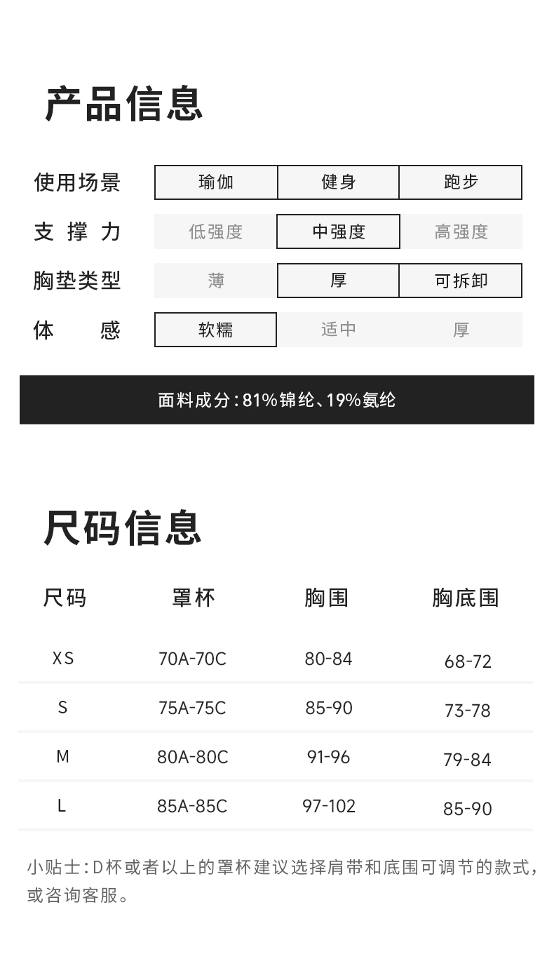 | Бюстгальтер: | XS, S, M, L |