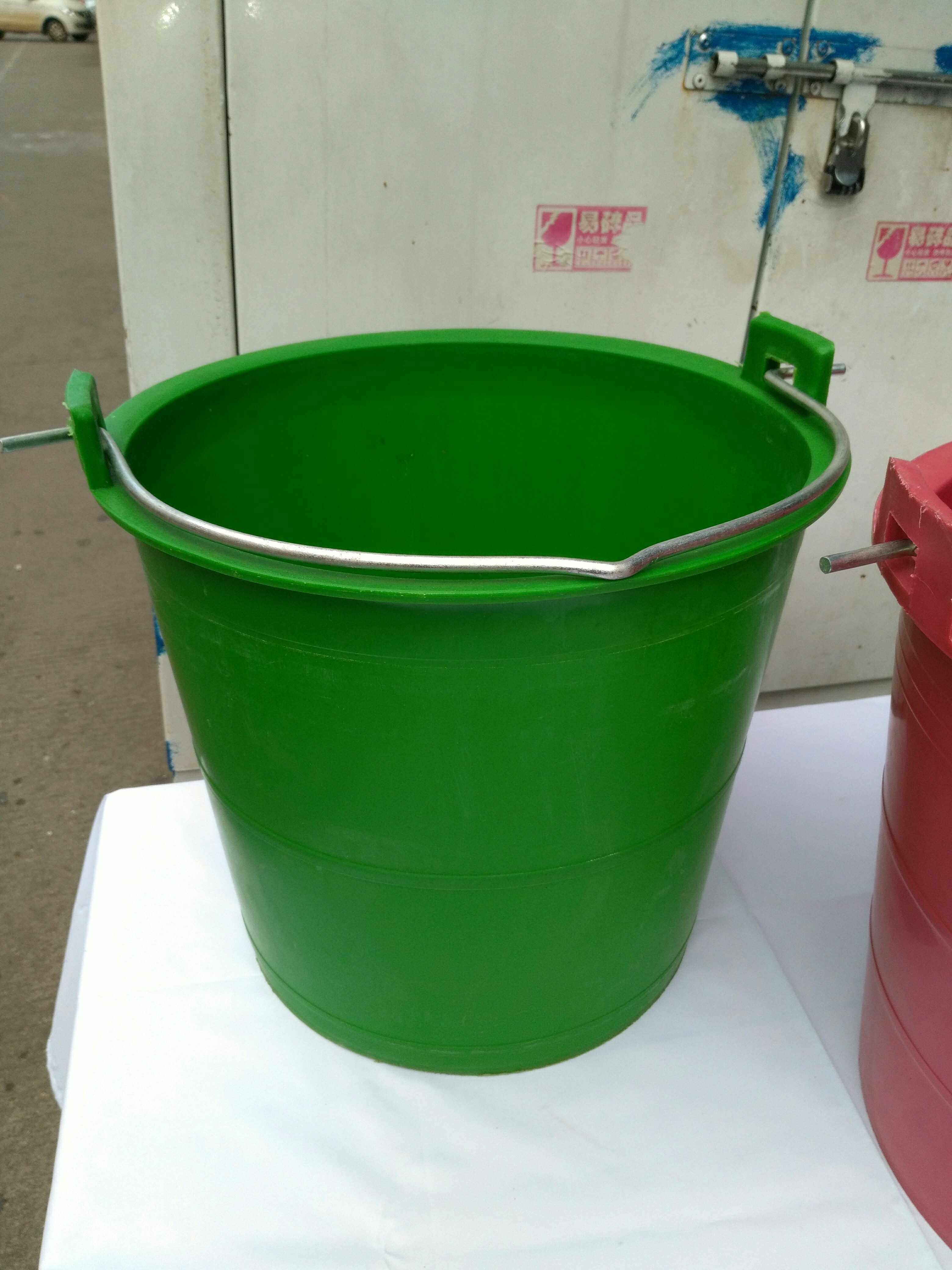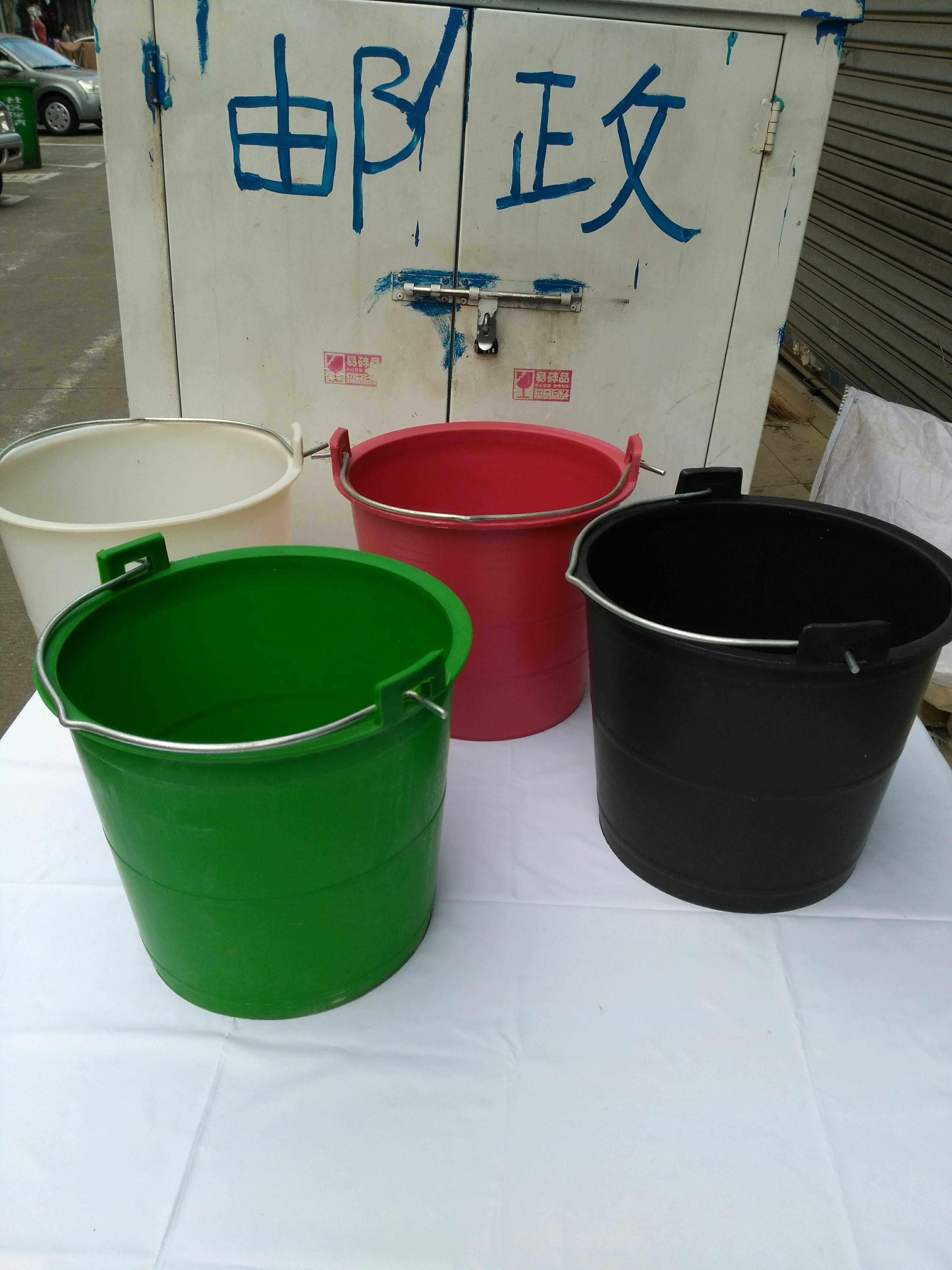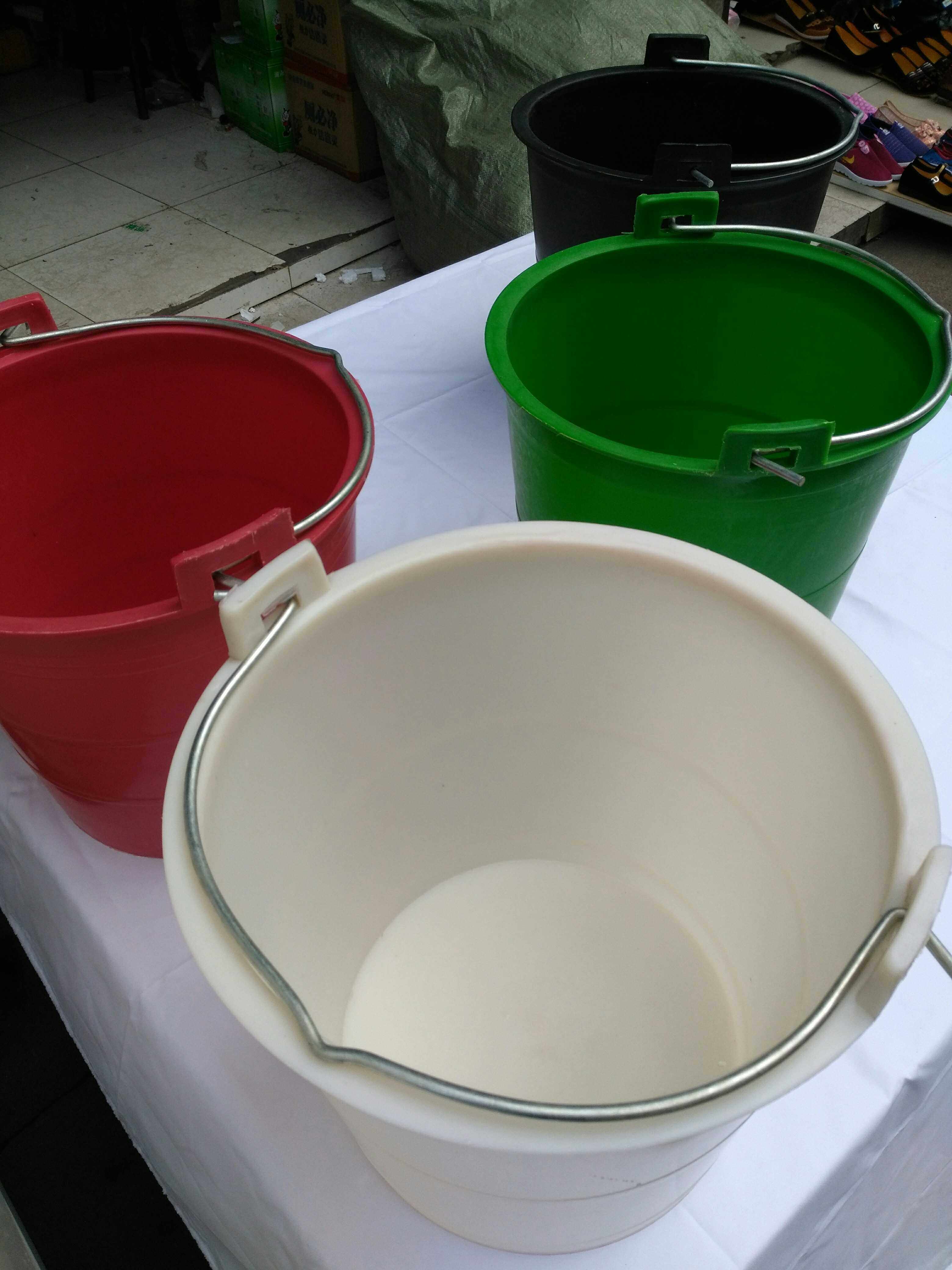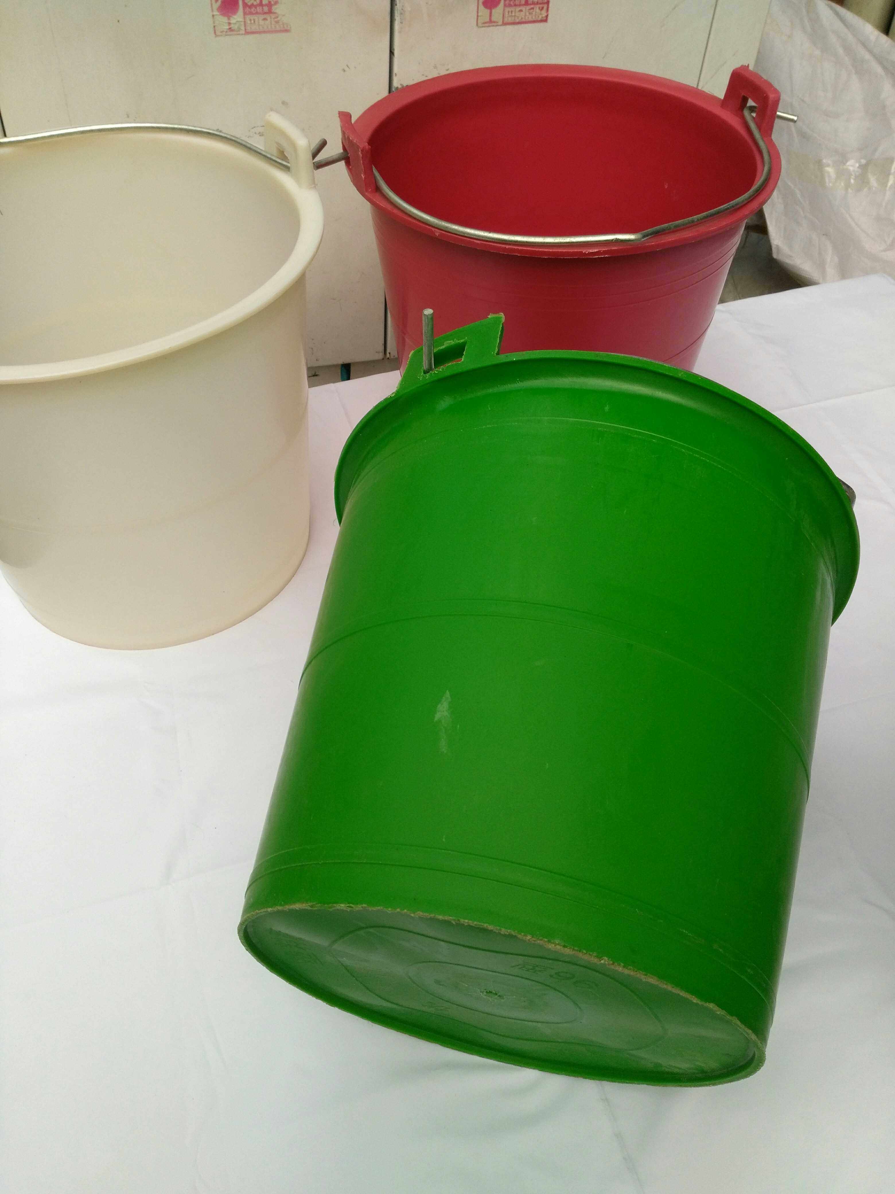 Белое черное зеленое красное старомодное сельское ведро, ручка