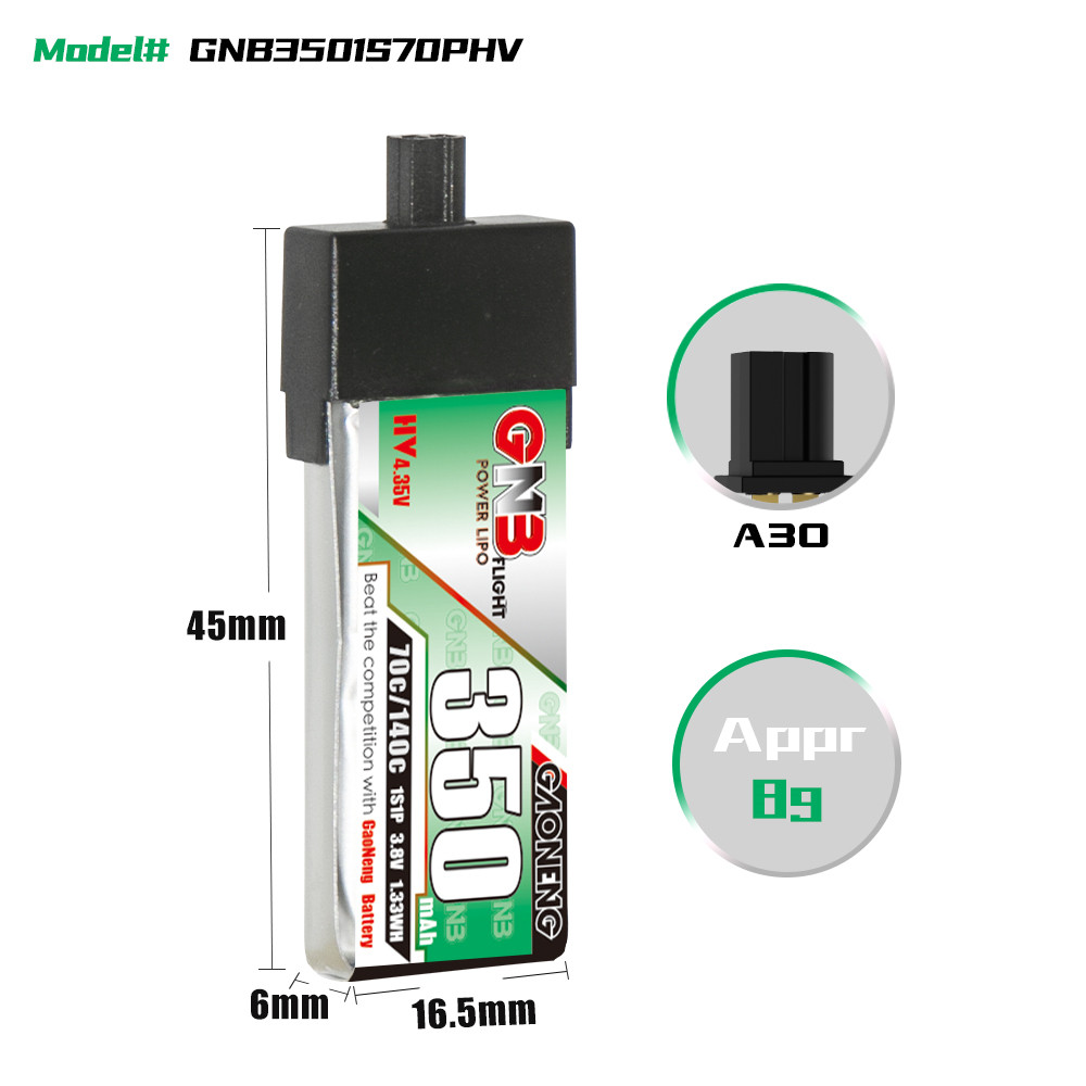 Высокая энергия GNB 350MAH 1S 3,8 В 70C модель БПЛА модели БПК FPV Модель лития батареи A30