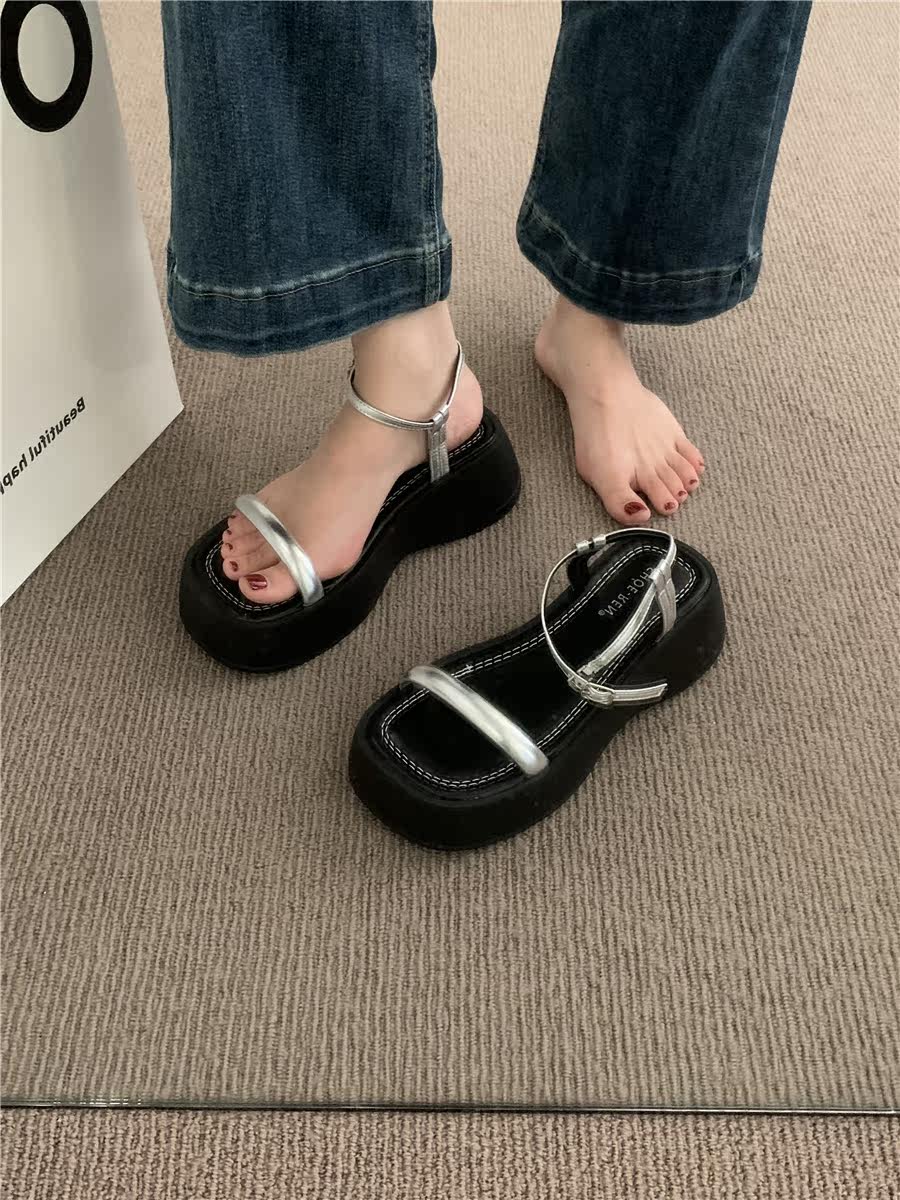 Универсальные сандалии на платформе, летняя обувь, серебряные слайдеры на высоком каблуке, в корейском стиле