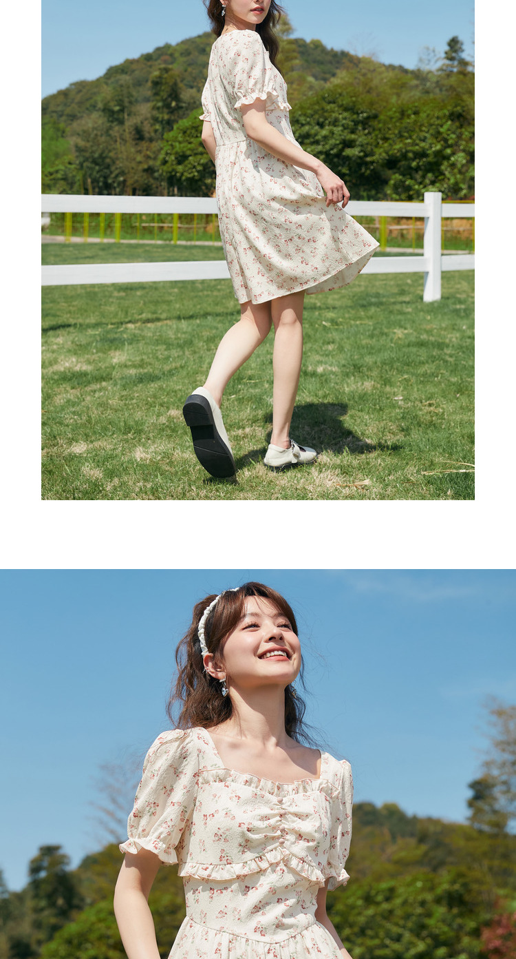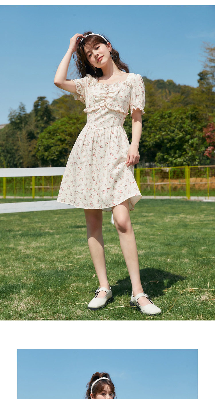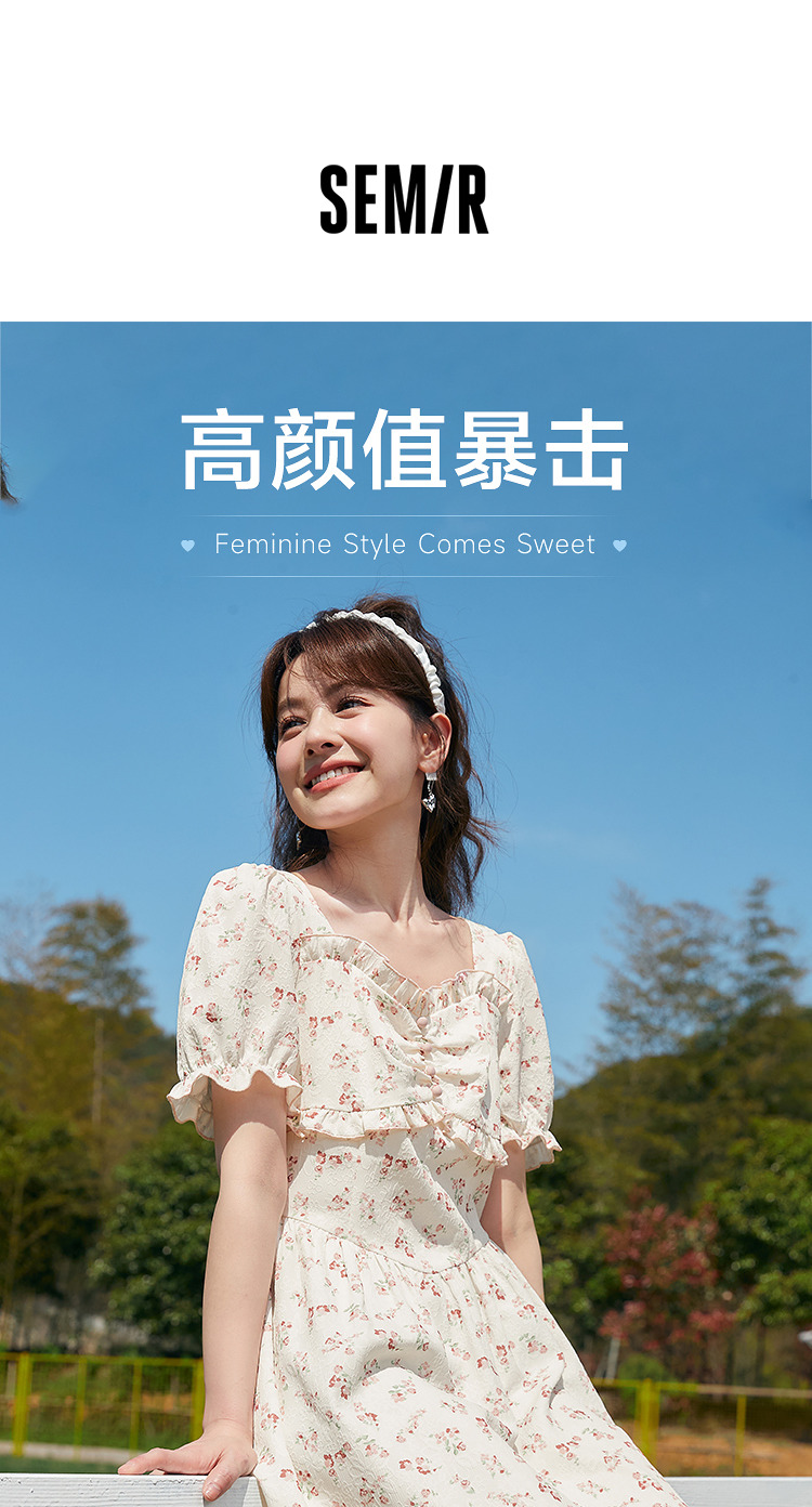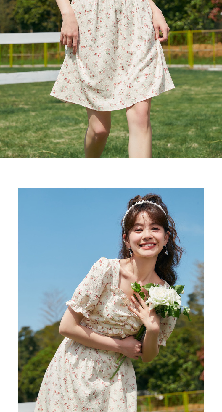 Semir, платье, летний корсет, французский стиль, рукава фонарики, квадратный вырез, в цветочек