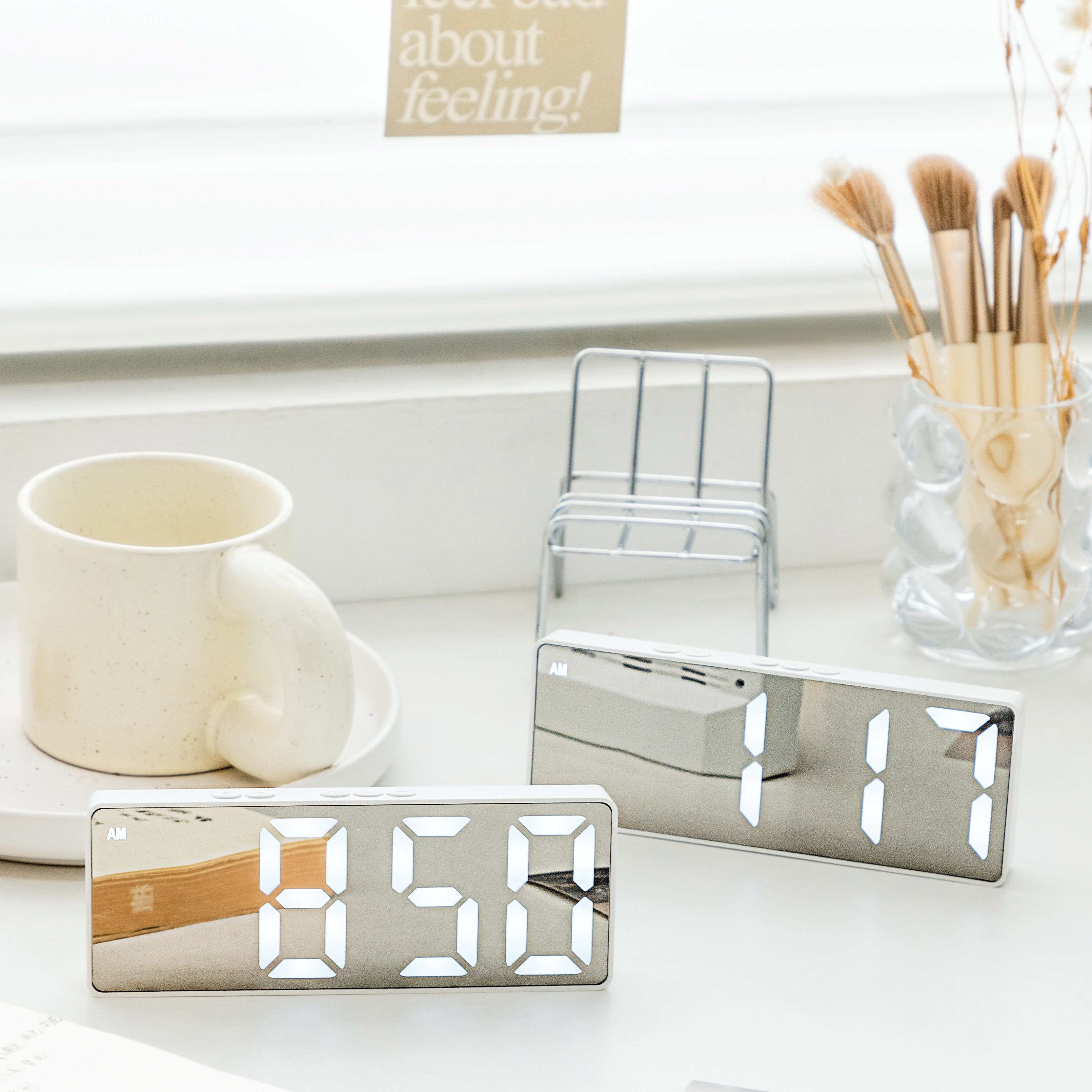Ins ins зарядка ветра зеркало зеркало цифровые часы светодиодные ночные световые матча настольный столик для переднего орнамента Студент Студент Электронные часы часов