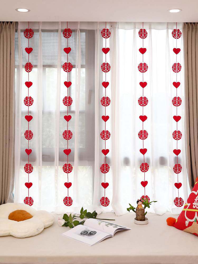 Занавес декоративная свадьба женская спальня мужская гостиная Трех -размерная подвеска с счастливым персонажем, чтобы вытащить цветочные свадебные комнаты свадебная комната