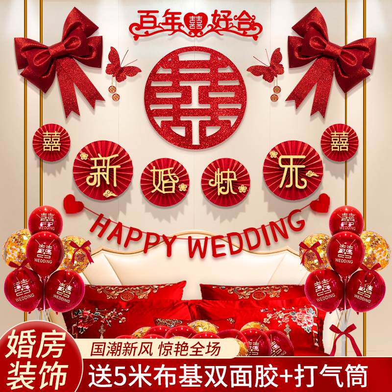 Свадебная, свадебная компоновка набор сети красной новый дом декоративный мужской спальня спальня кровати фона стена гостиная телевизорная стена