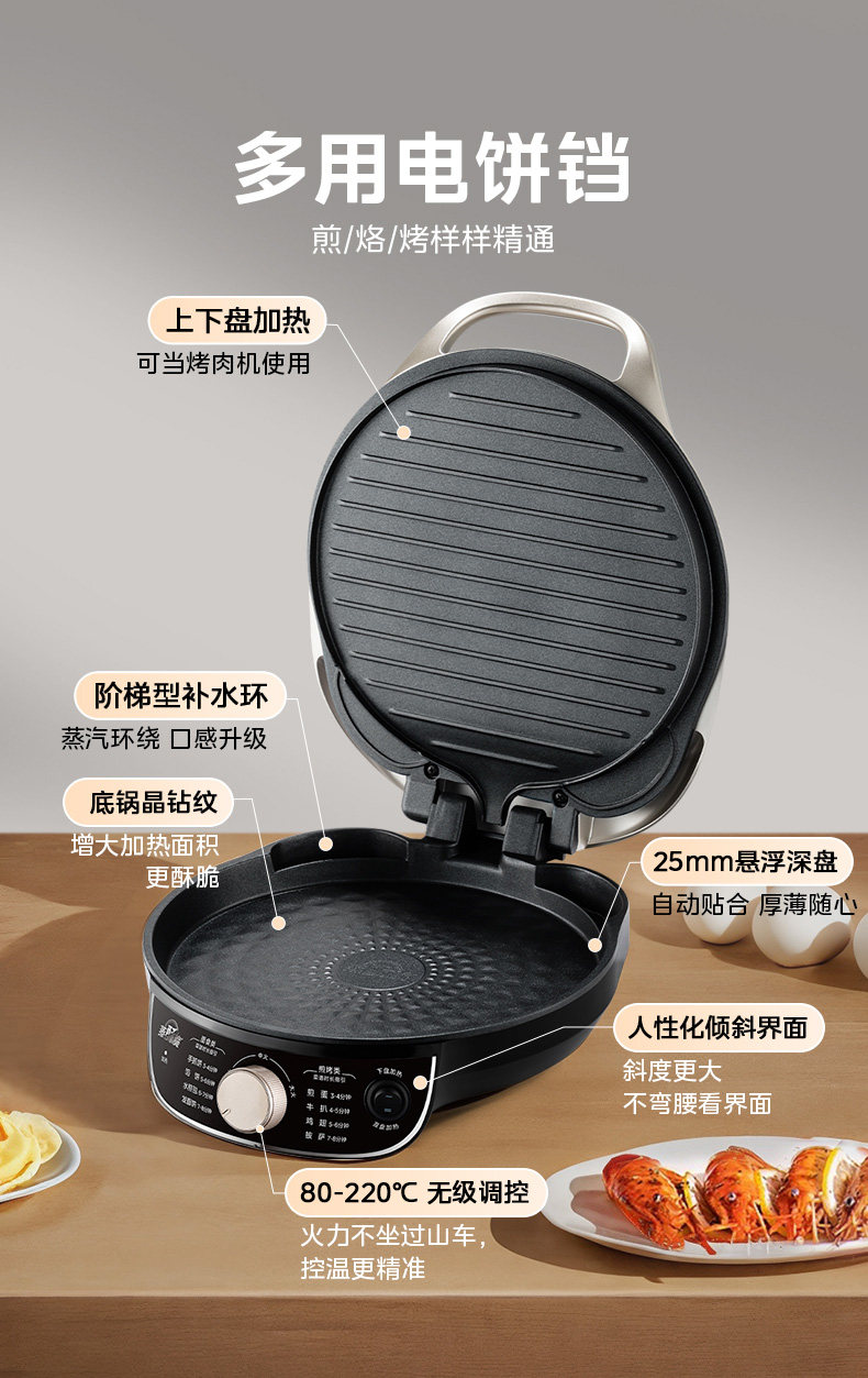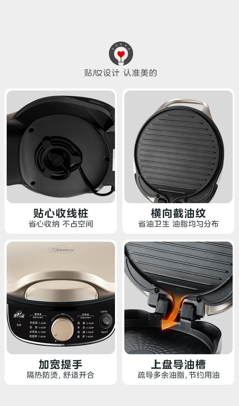 Электрическая сковорода для блинов Midea, бытовая двухсторонняя нагревательная машина для блинов «все в одном», увеличенная и углубленная электрическая сковорода, новая аутентичная