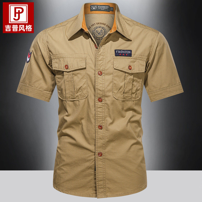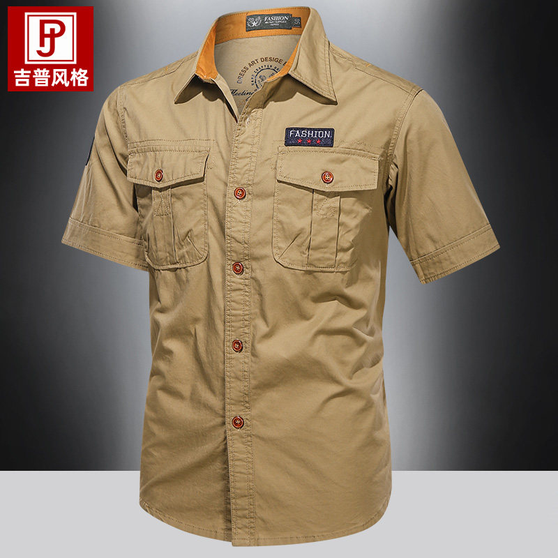 Тактическая летняя дышащая дорожная хлопковая рубашка, короткий рукав