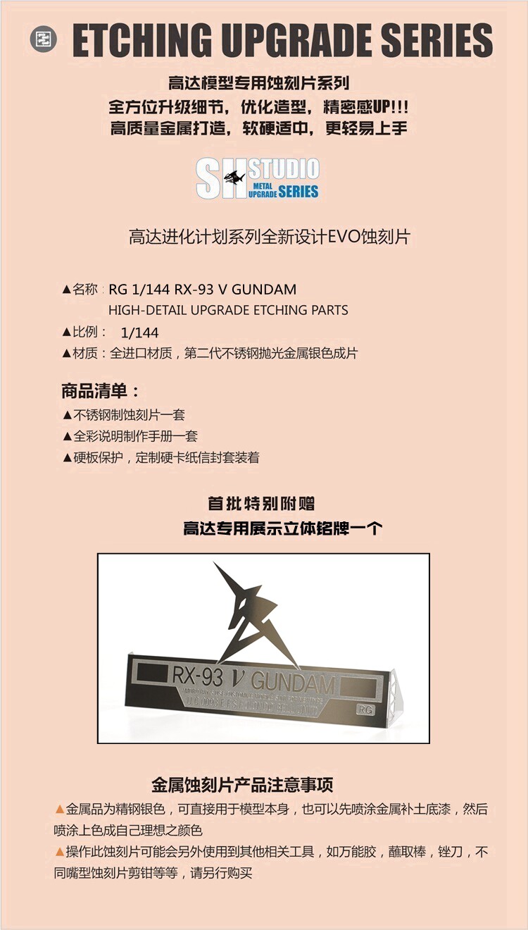 Модель супермаркета SH STUDIO RG 1/144 RX-93 NU Cow Gundam, металлический травленый лист