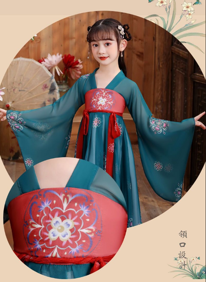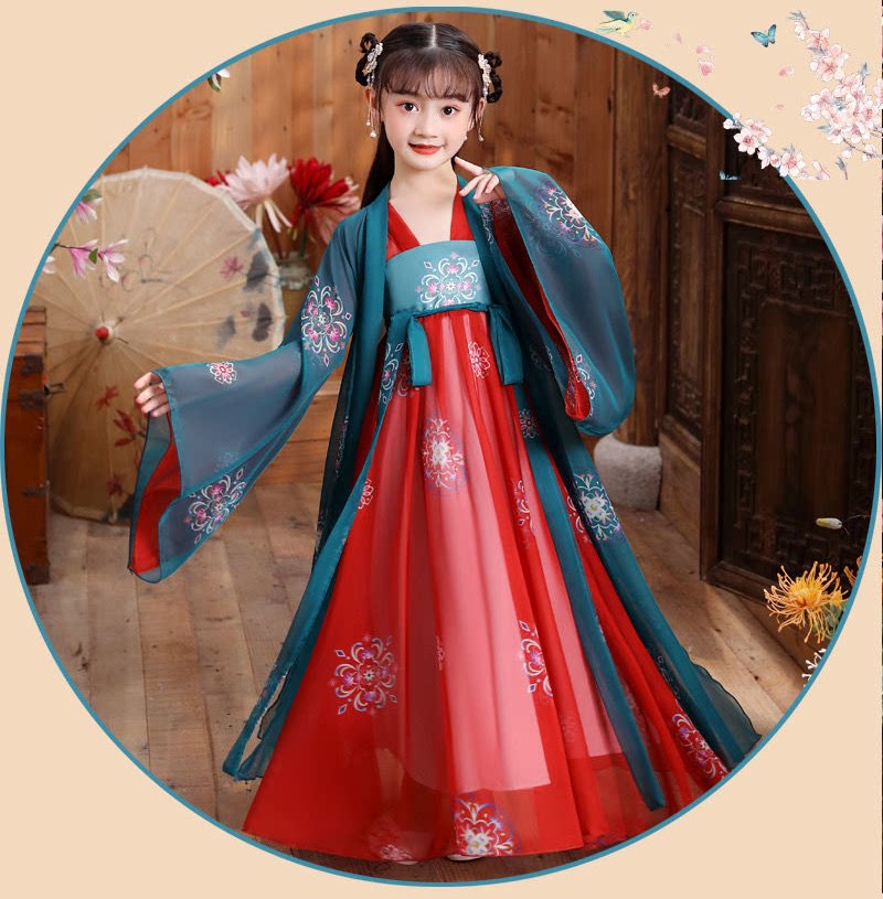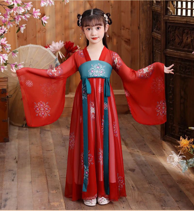 Новое китайское платье ханьфу в стиле ретро, имитация китайского платья для девочек династии Тан