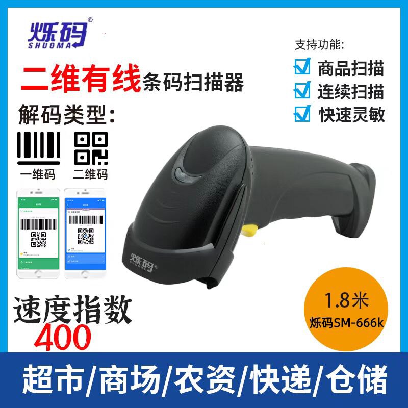 Shuo Code Scanning Gun Один двухмерный код беспроводной портативной платформы для сканирования Super Cashier Fast Scan