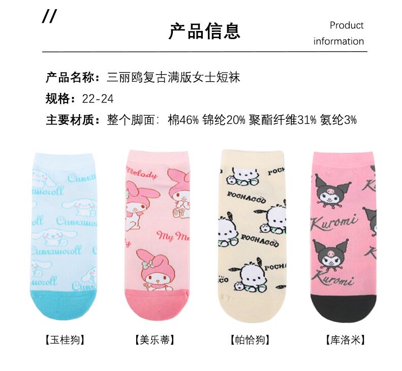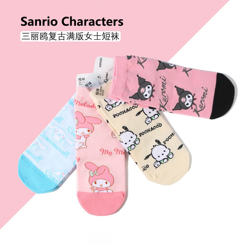 Miniso Miniso Носки Sanrio ретро -клетчатые серии вышитых из вышитых хлопковых носков волновых носков