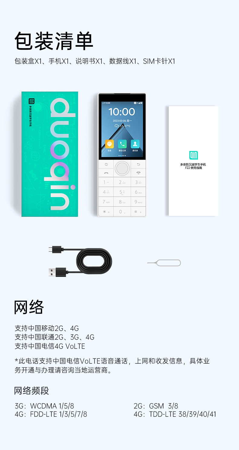 多亲 F22 Мобильный телефон xiaoai Classate Old Machine, Long -Standby Loud Hearne 4G Full Netcom Прямая кнопка платы.