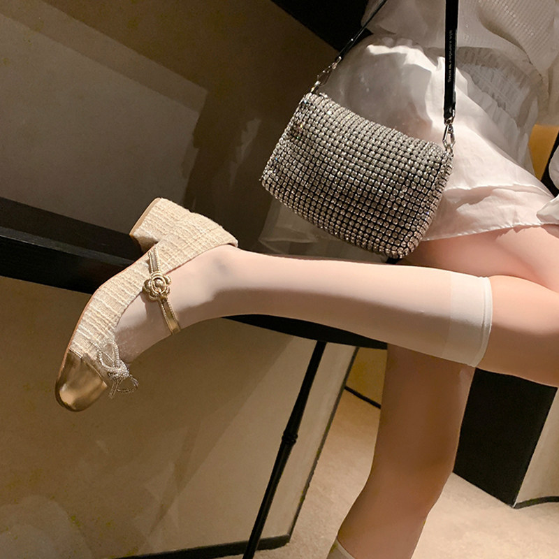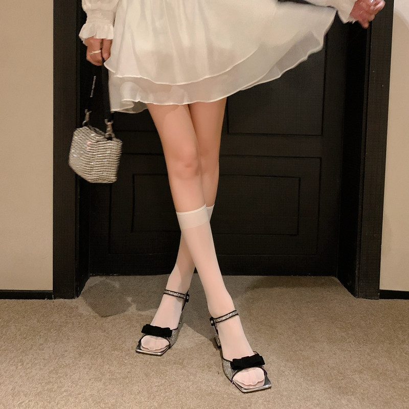 Ультратонкие белые колготки, носки, в стиле Шанель, популярно в интернете, средней длины, в корейском стиле