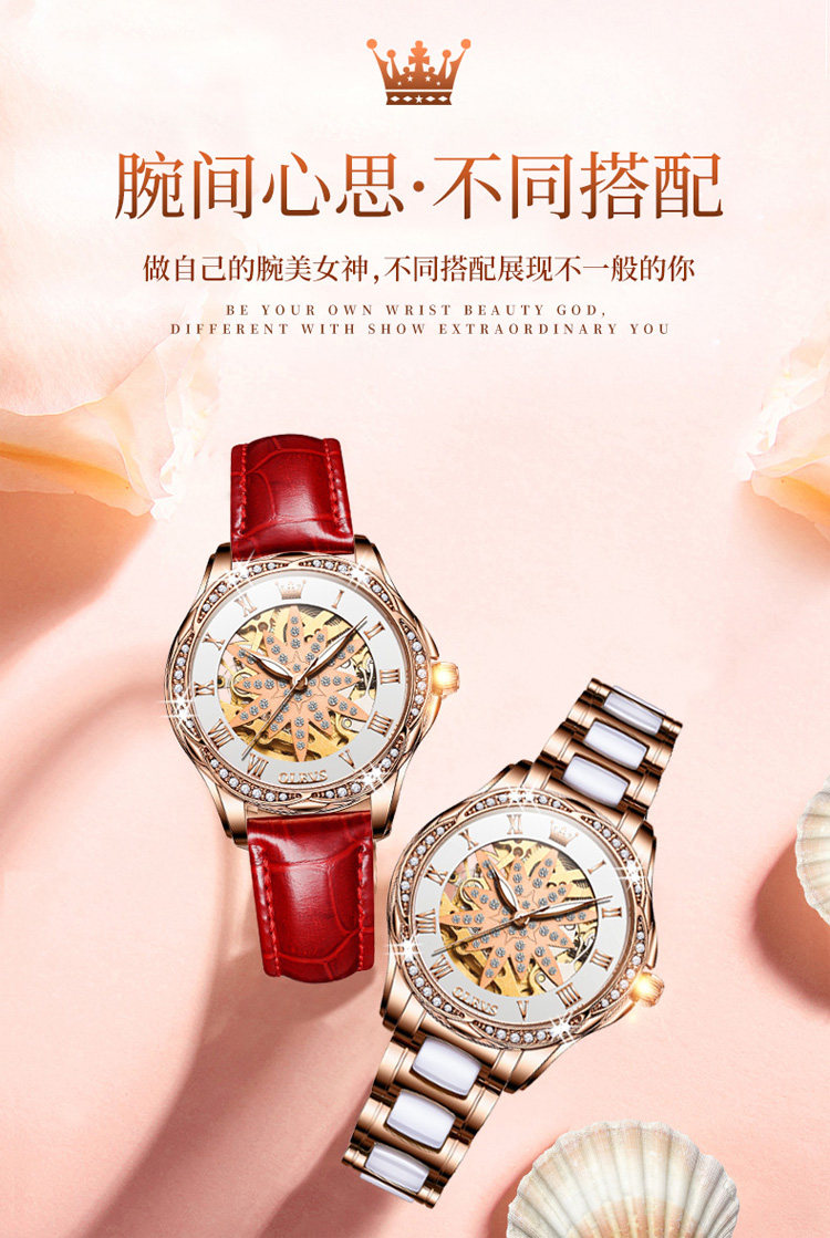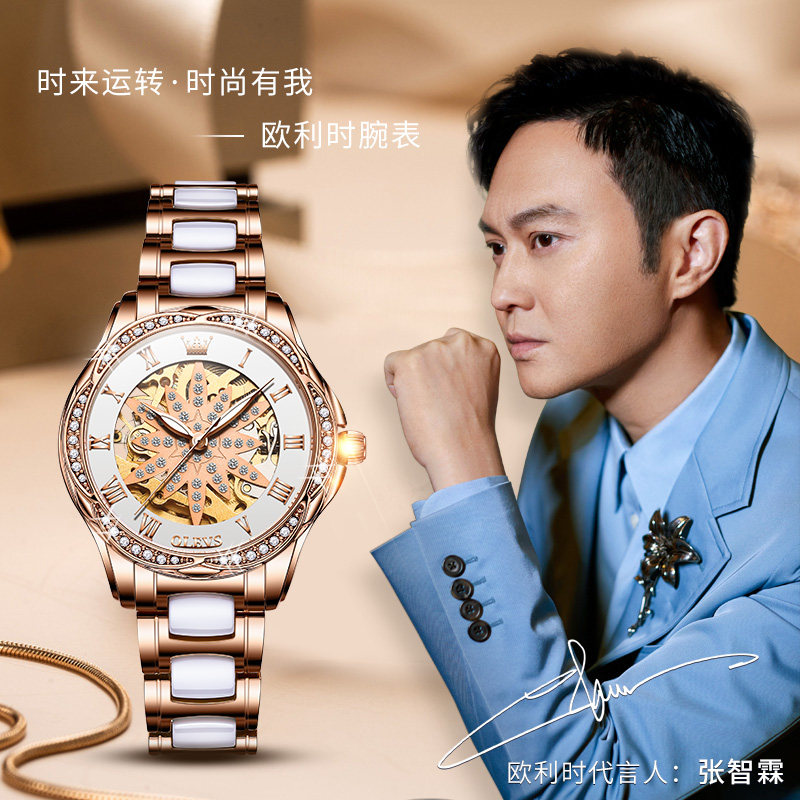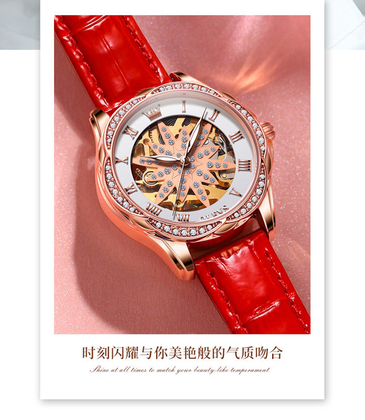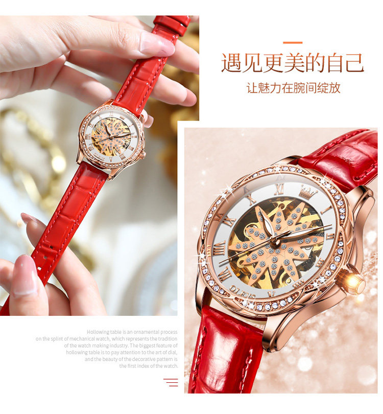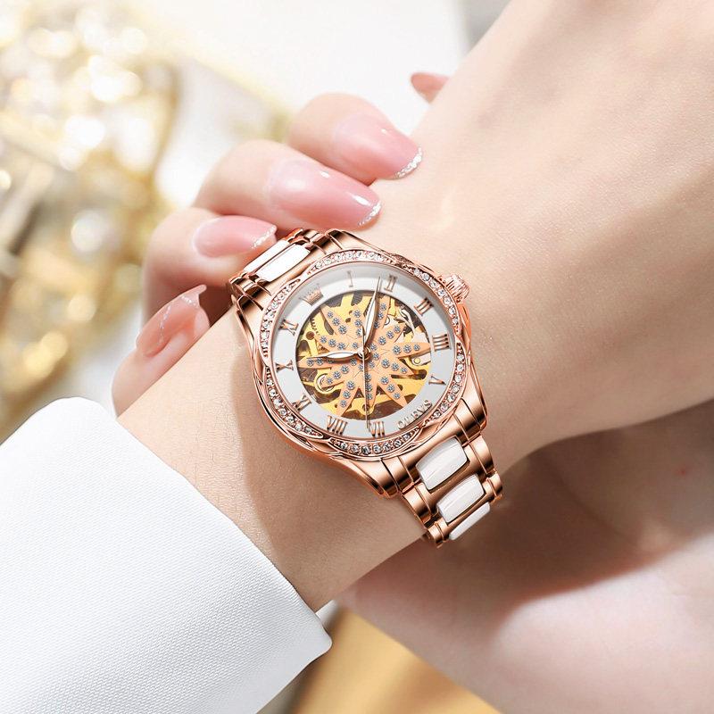 Швейцарские часы, механические механические часы, женские часы, полностью автоматический, легкий роскошный стиль, женский стиль