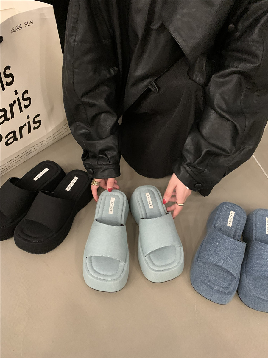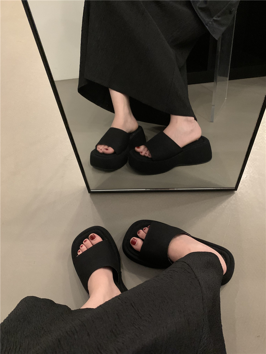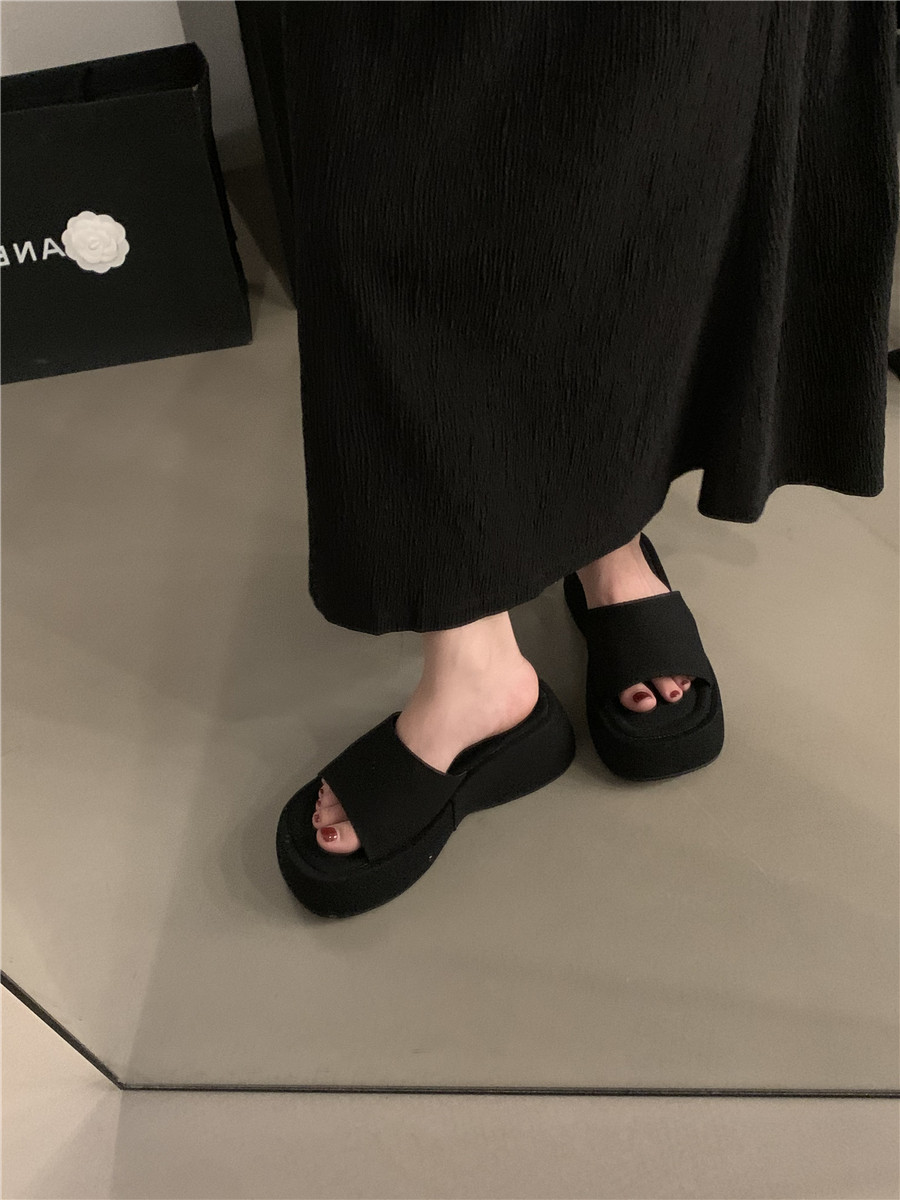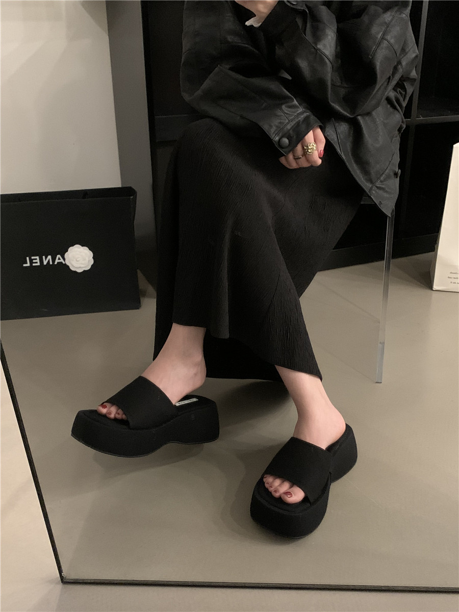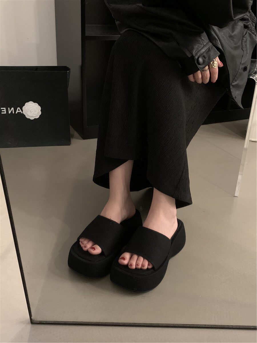 Высокие летние черные слайдеры, тапочки, обувь, модные сандалии, городской стиль