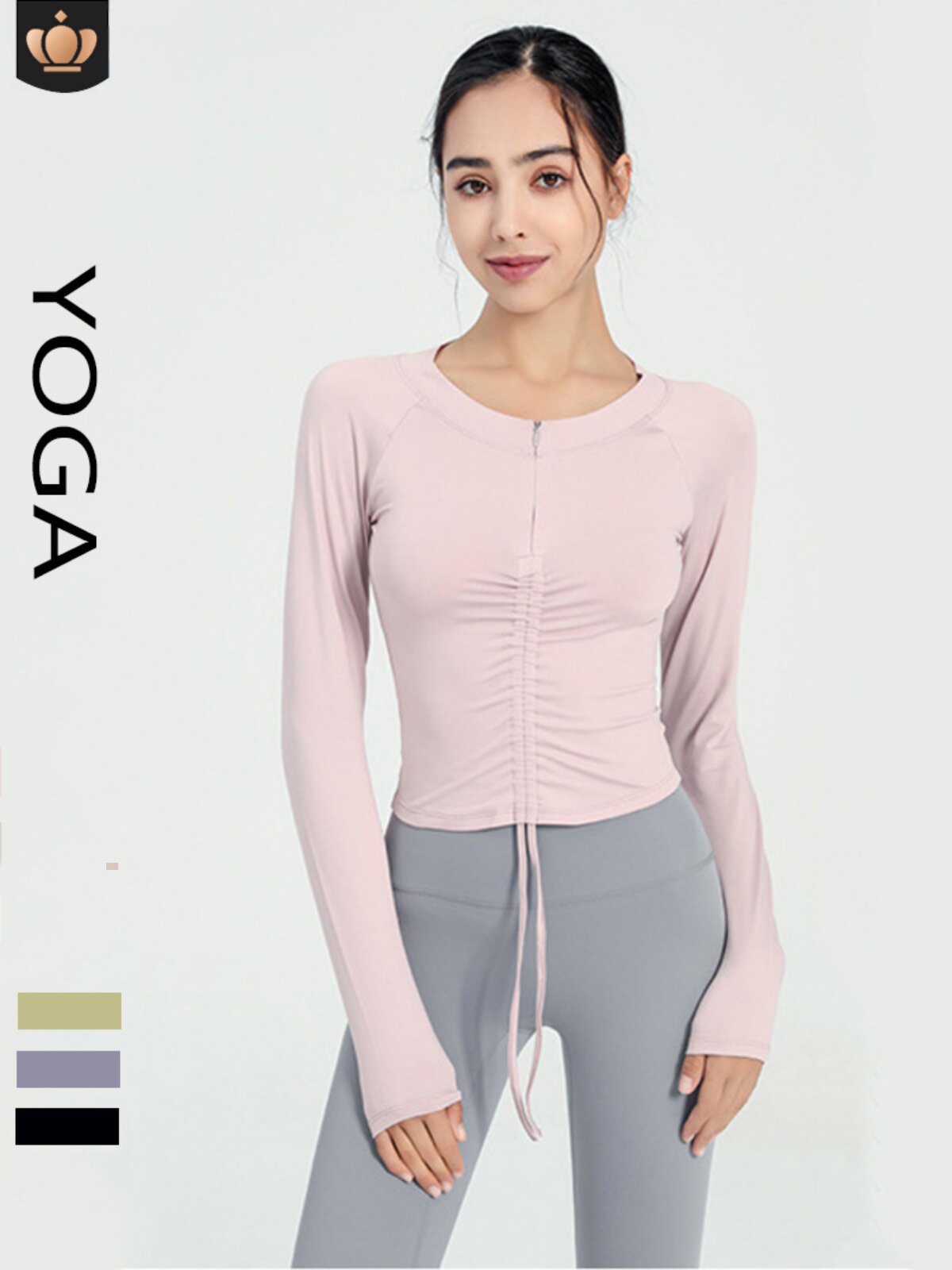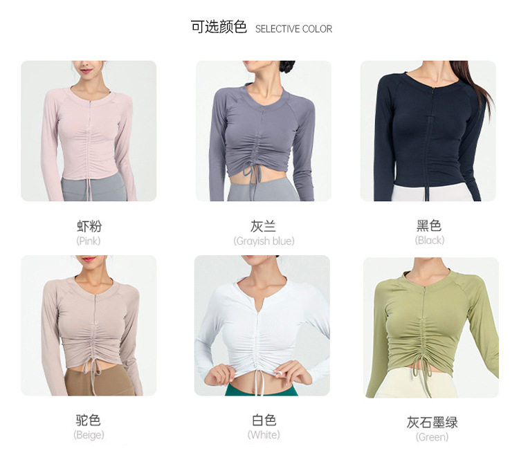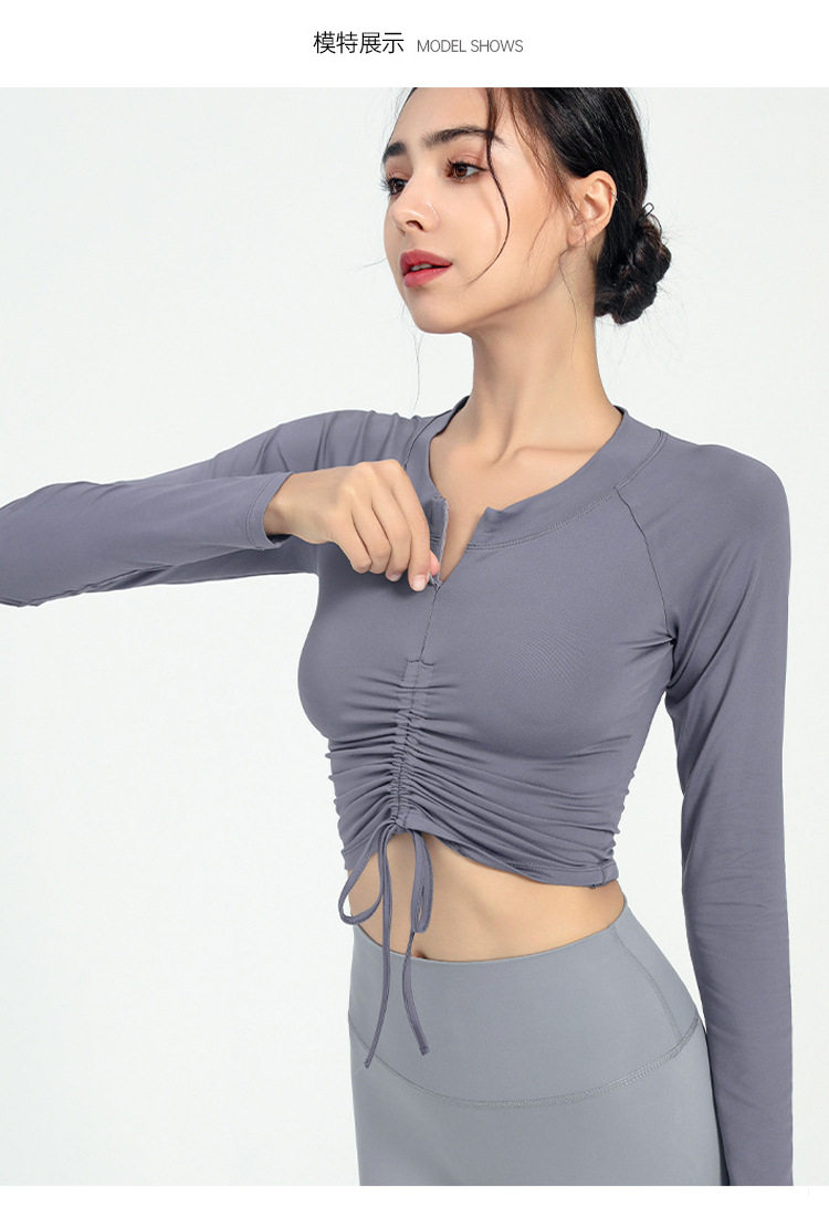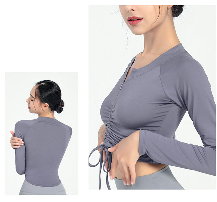 Одежда для йоги, лонгслив с молнией, спортивная футболка для спортзала, на молнии, на шнурках