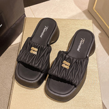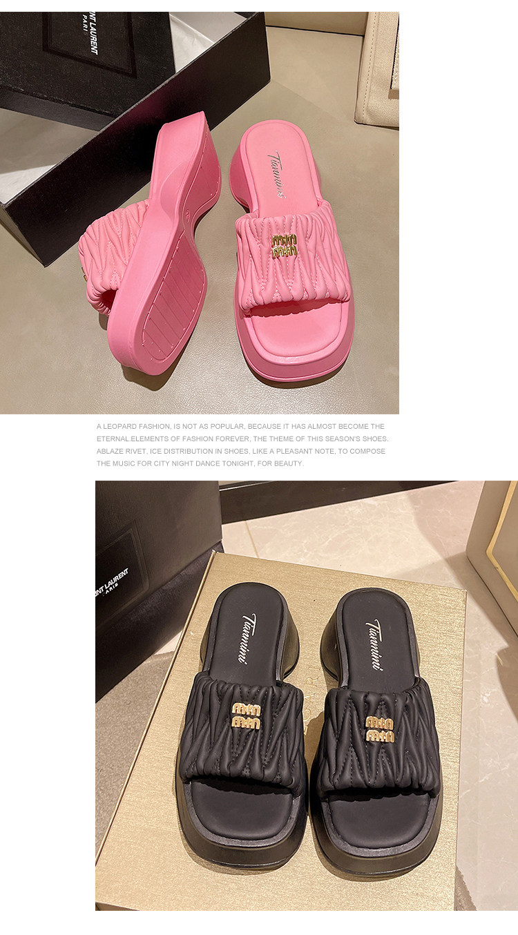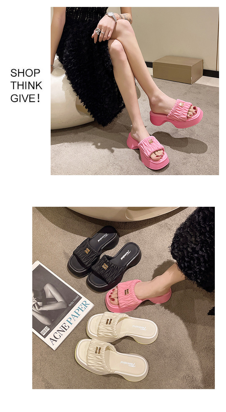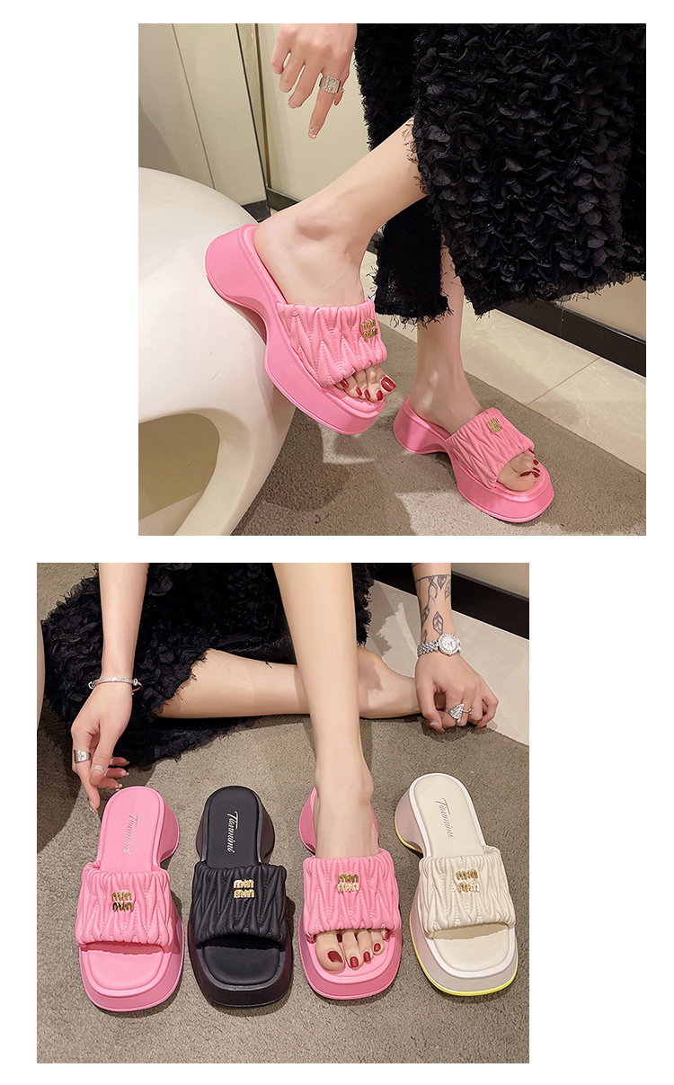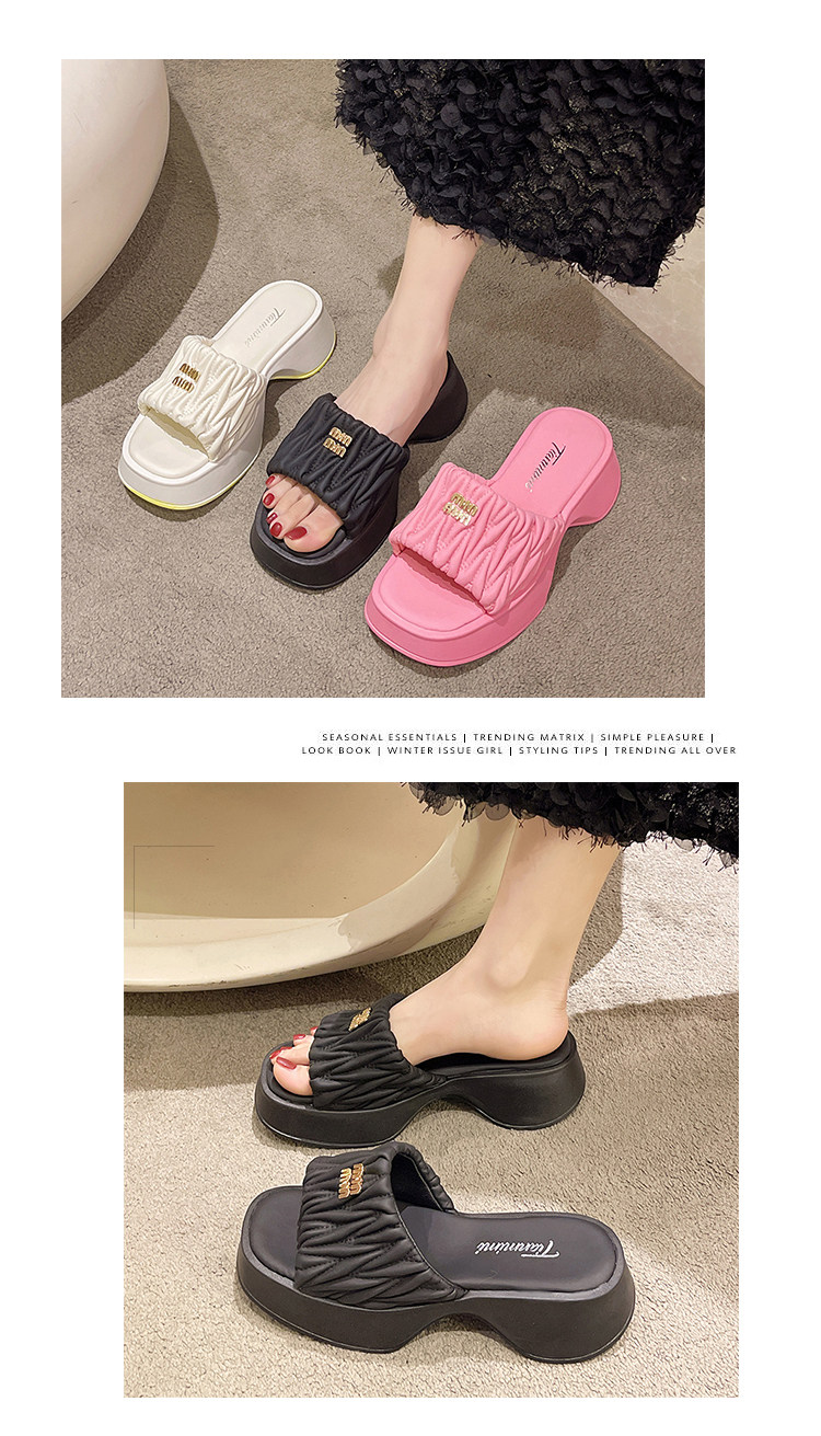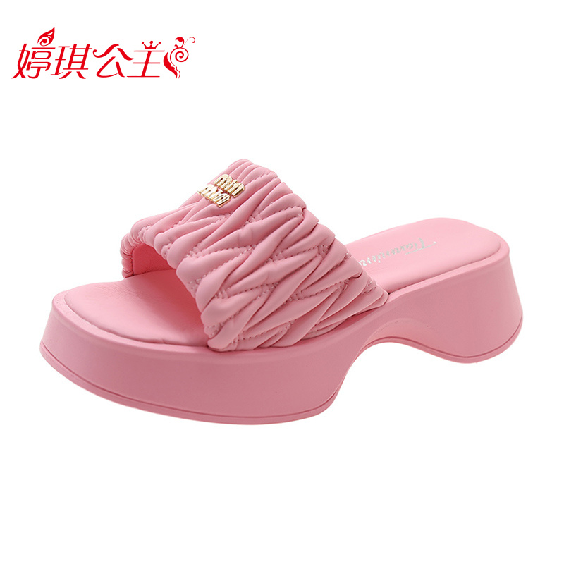 Tide, тапочки на платформе, летняя нескользящая обувь, высокие слайдеры, в корейском стиле, коллекция 2023, французский стиль, изысканный стиль