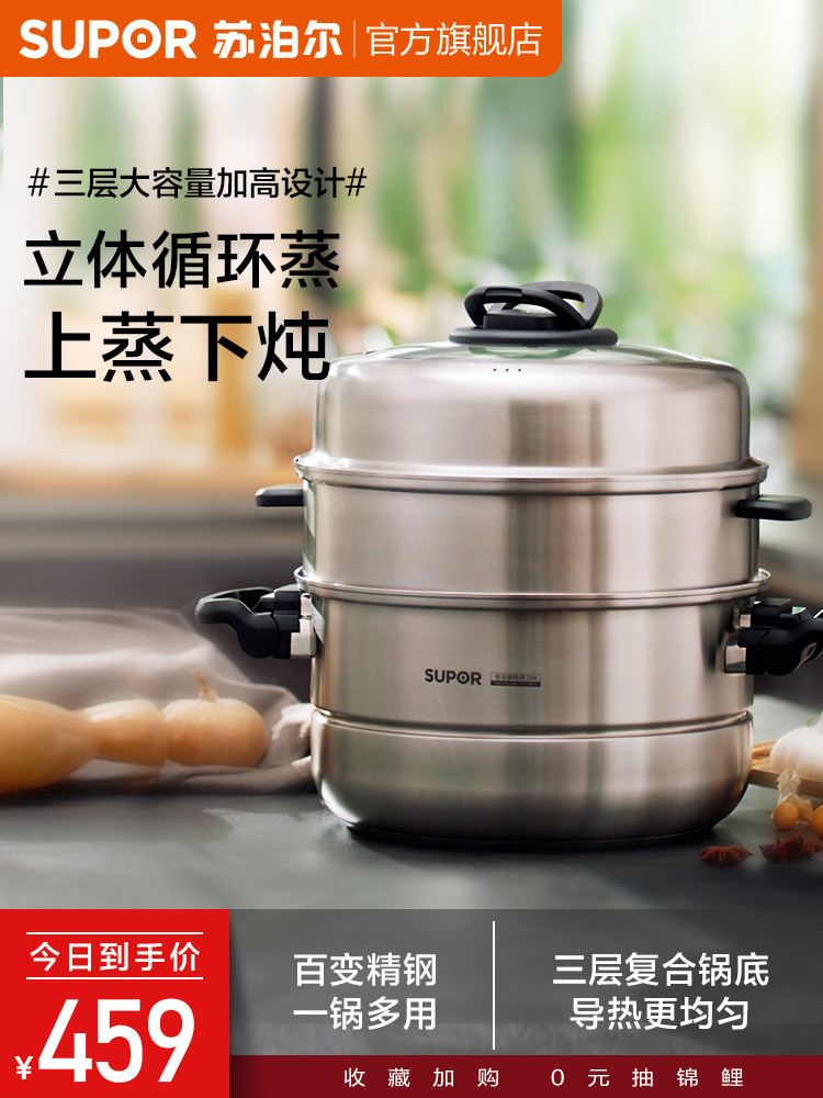 Электромагнитная универсальная пароварка из нержавеющей стали, увеличенная толщина, 3 этажей