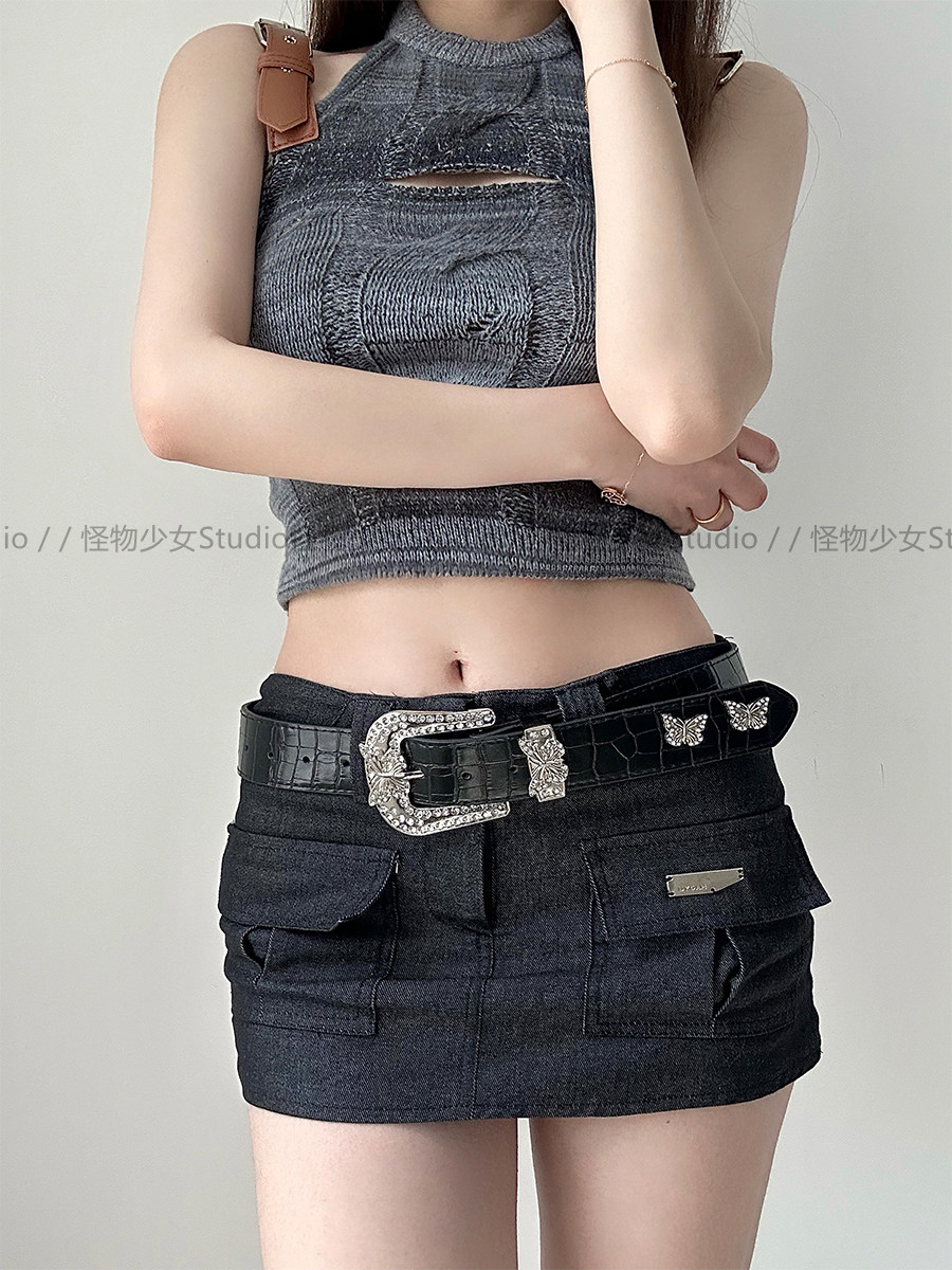 Узор змеи бабочка иголка для пряжки субкультура сладкая горячая девушка джинсы личность черная ремень украшение