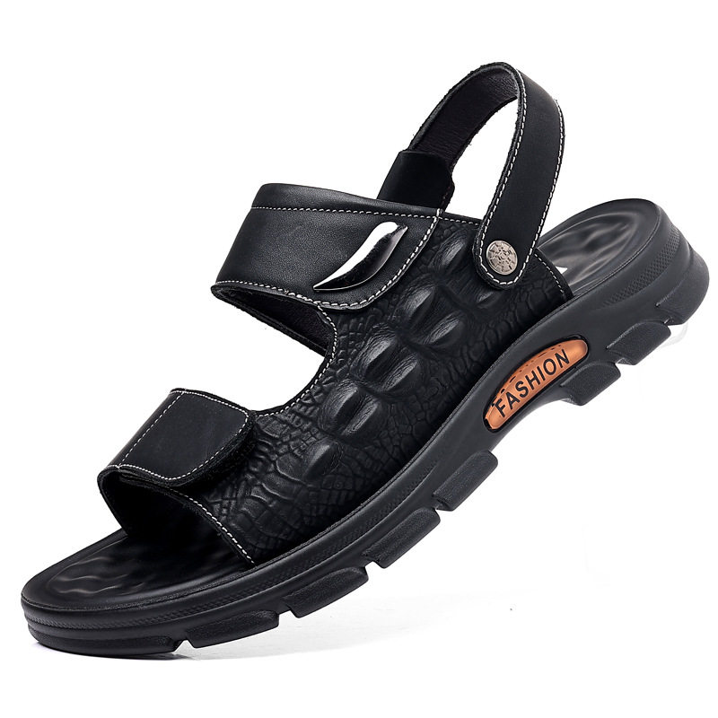 Кожаные нескользящие мужские сандалии, слайдеры, пляжная обувь, для среднего возраста