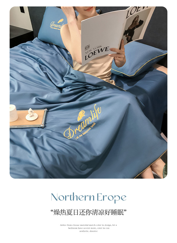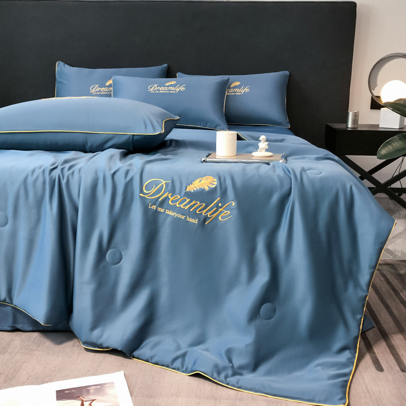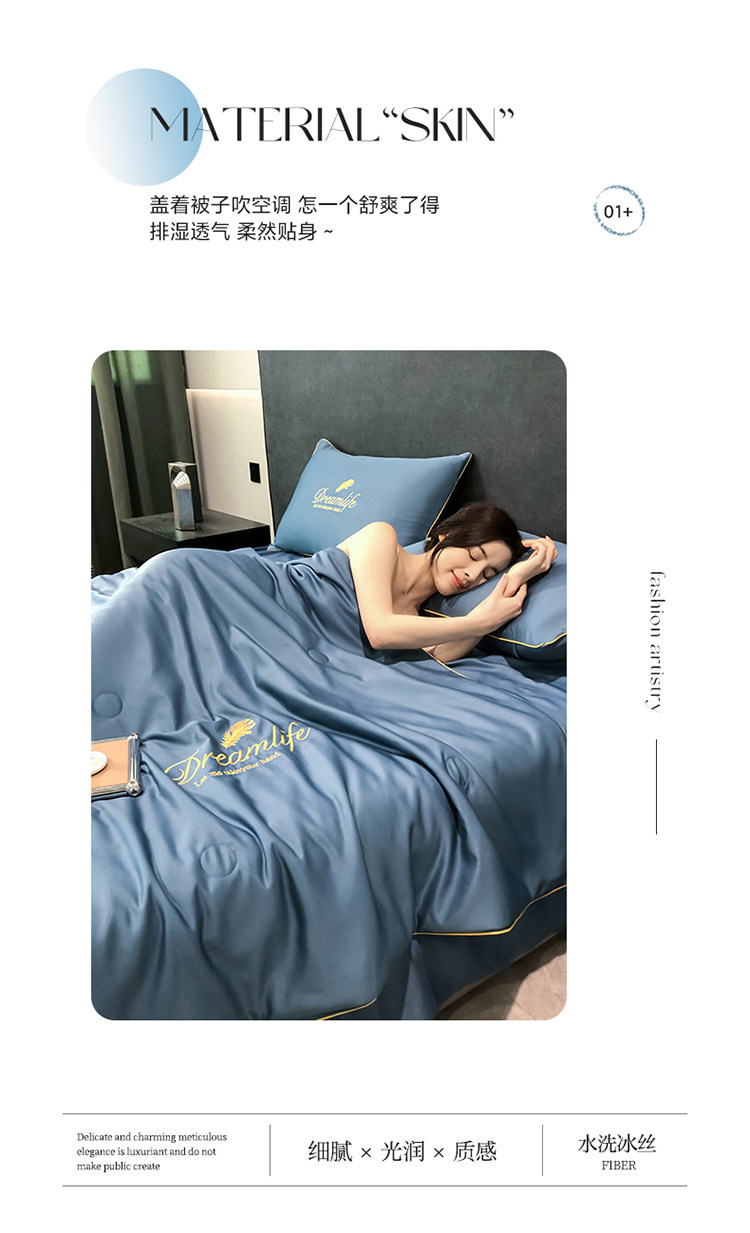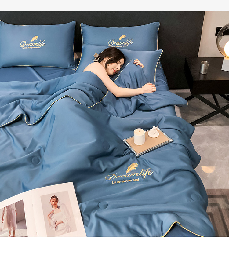 Прохладное одеяло, тонкий летний шелковый комплект, 4 предмета, можно стирать
