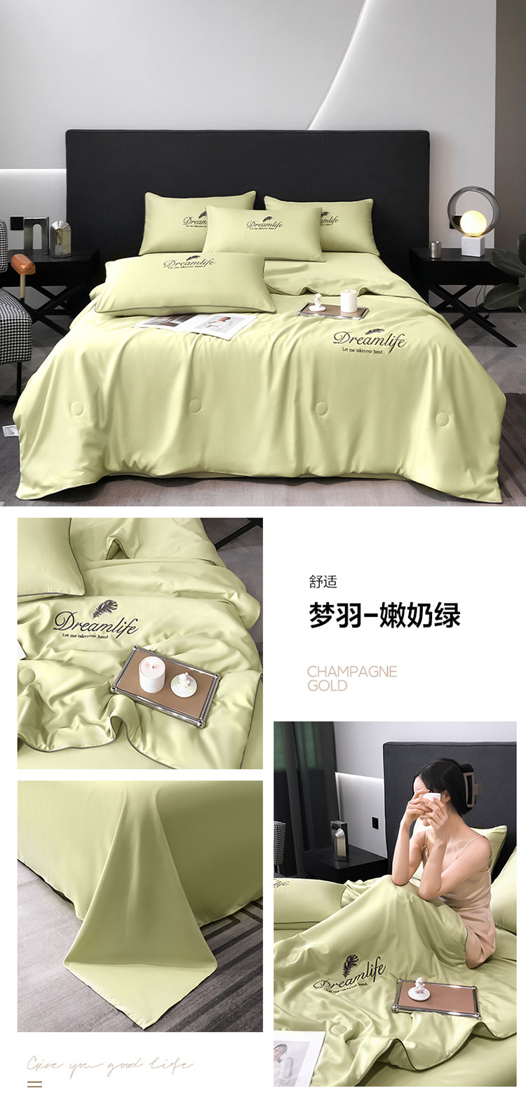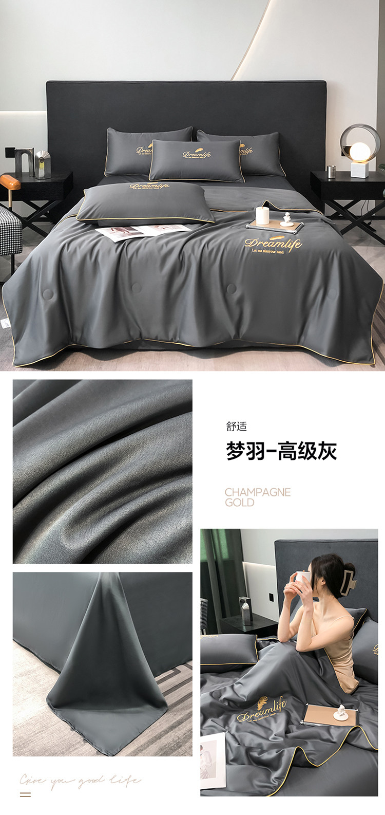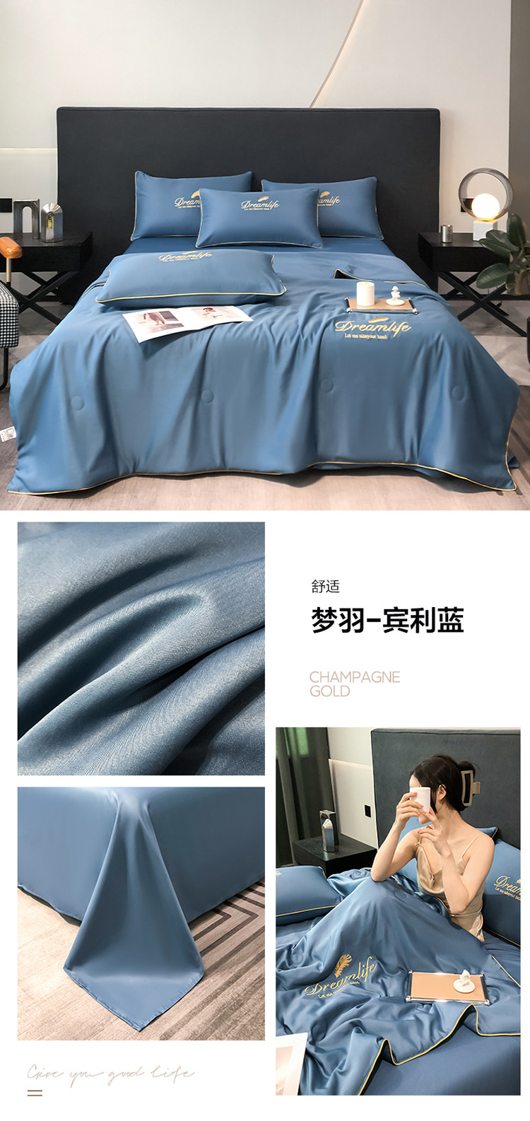 Прохладное одеяло, тонкий летний шелковый комплект, 4 предмета, можно стирать