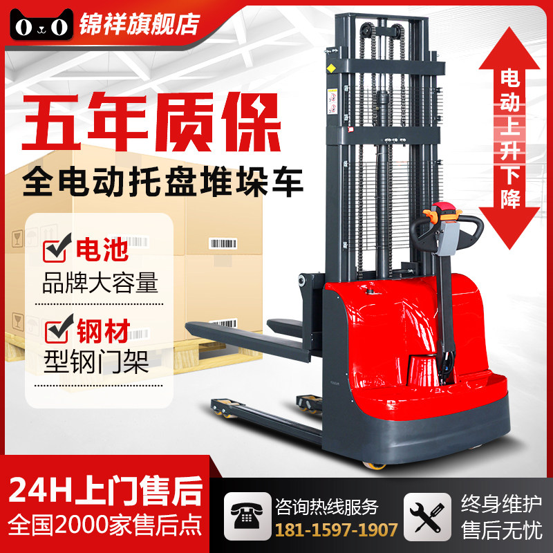 Jinxiang Full Electric Electric Forklift 1 Ton Small 2 -тон гидравлический стек Высокий автомобиль Полностью автоматически повышенный подъем подъем, установка, разгрузка стека, ток