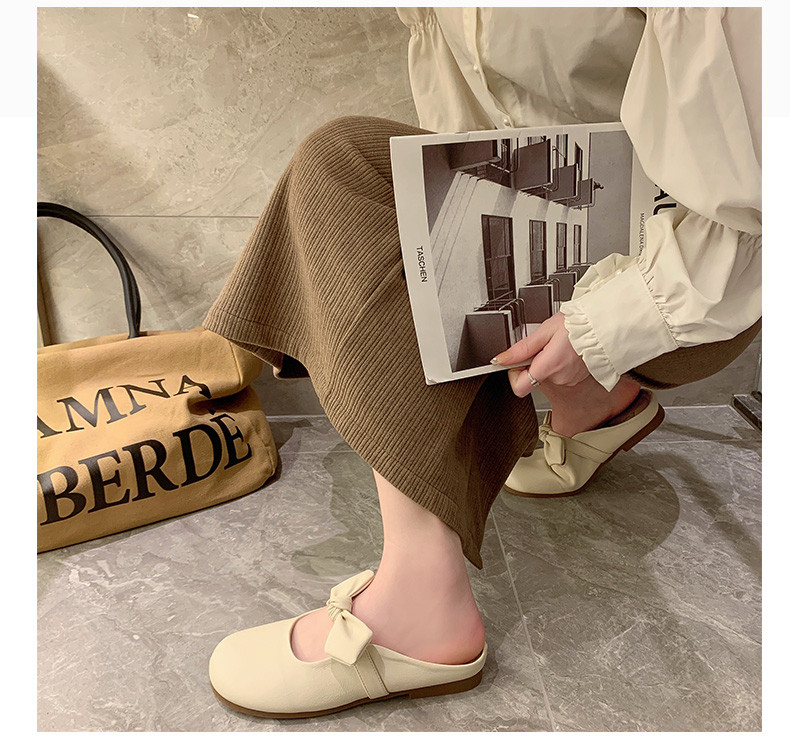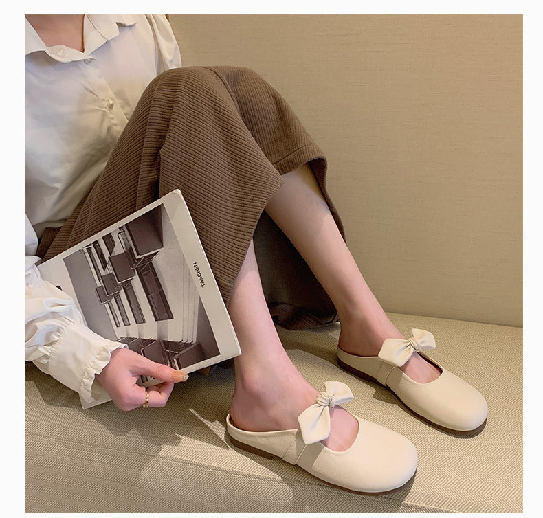 Baotou Slippers Женщины в ленивых туфлях 2024 Лето Новый Французский Нежный Узел лука