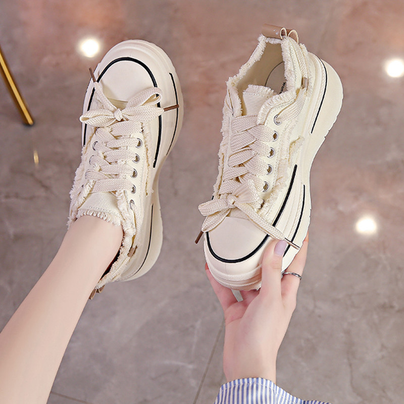 Летняя модная тканевая белая обувь на платформе, универсальные кроссовки, коллекция 2023