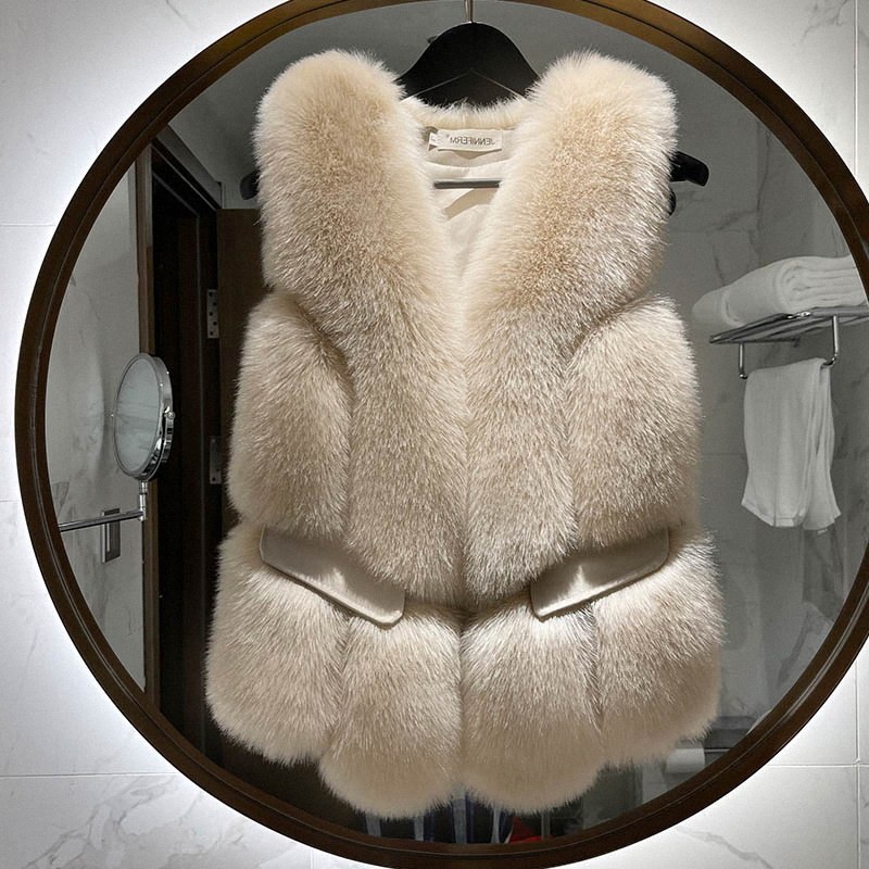 Короткий меховой жилет Женщина зимние европейские дамы, мех все -жестяные жилетки лиса?