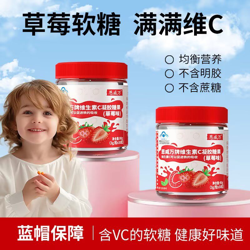 Enwei wan vitamin c гель конфеты 30 Графический клубничный вкус 0 сахароза детей взрослые беременные материнские материнские.