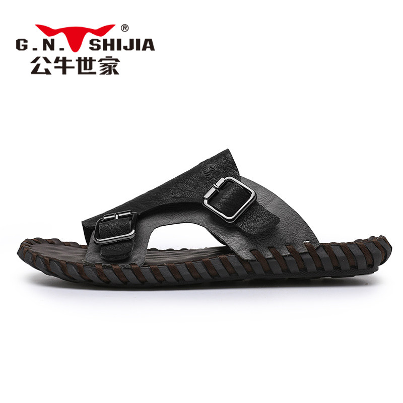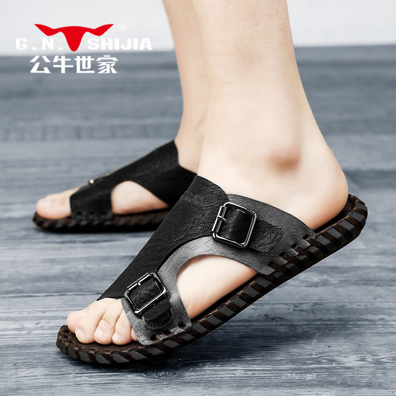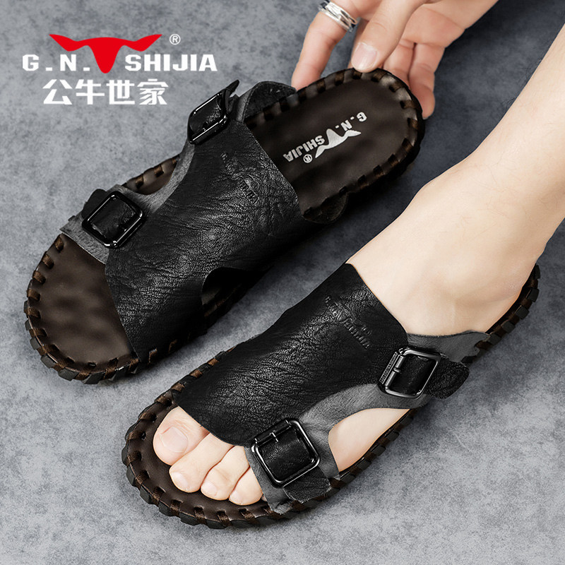 Летние тапочки, мужские спортивные пляжные слайдеры для отдыха, из натуральной кожи