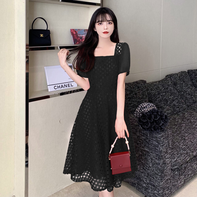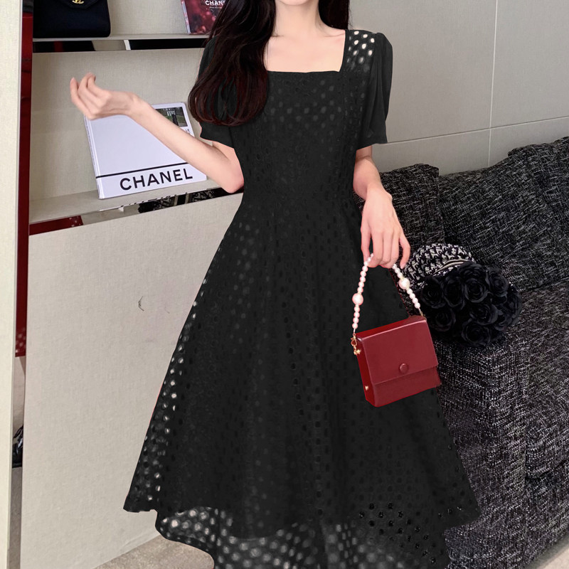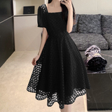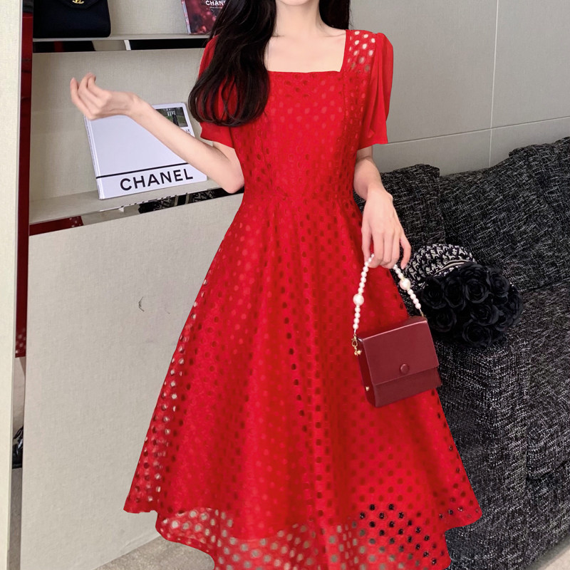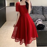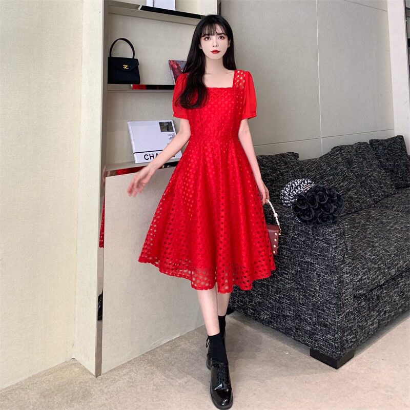 Юбка, модное кружевное платье, большой размер, французский стиль, изысканный стиль, яркий броский стиль, квадратный вырез, подходит для подростков