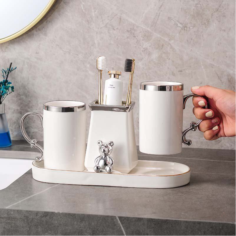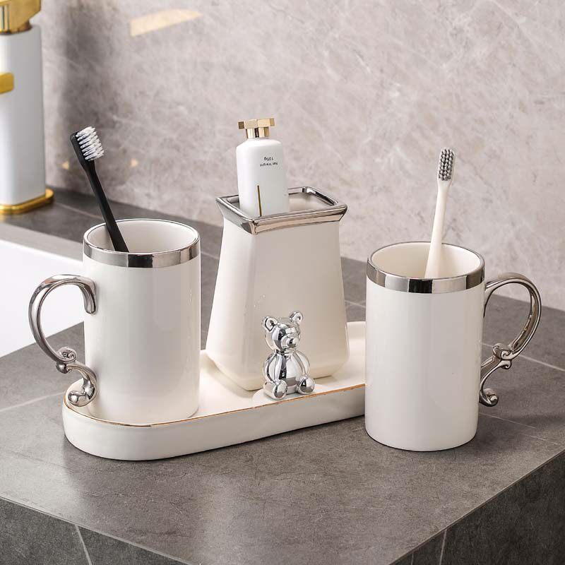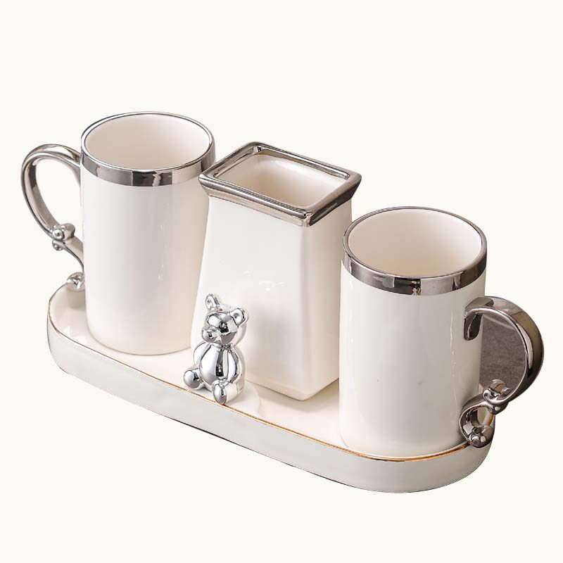 Керамический ополаскиватель для рта для влюбленных, серебряный современный комплект, простой и элегантный дизайн