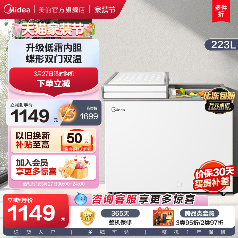 223 литр -морозила с двойной температурой в Midea