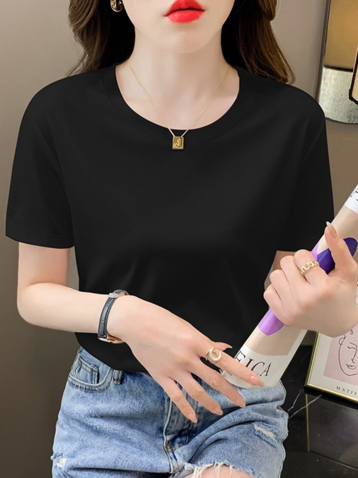 Tide, летняя приталенная шелковая футболка, 2026 года, в корейском стиле